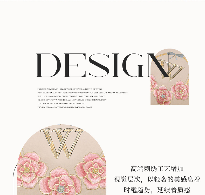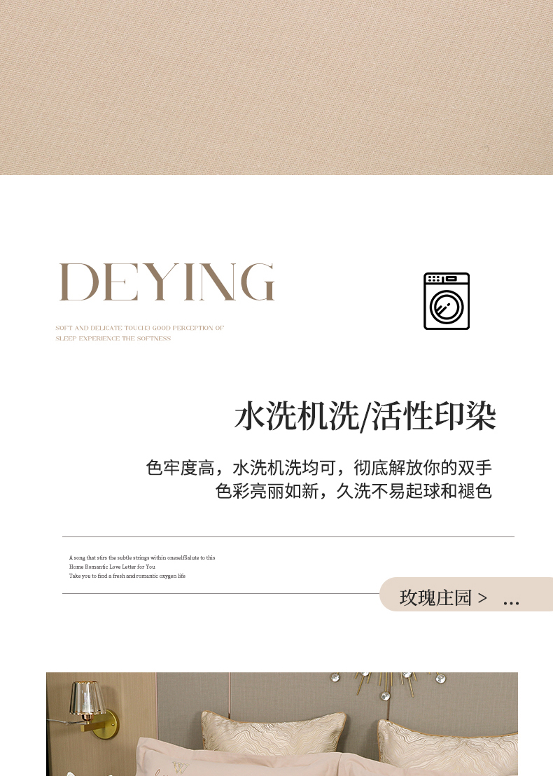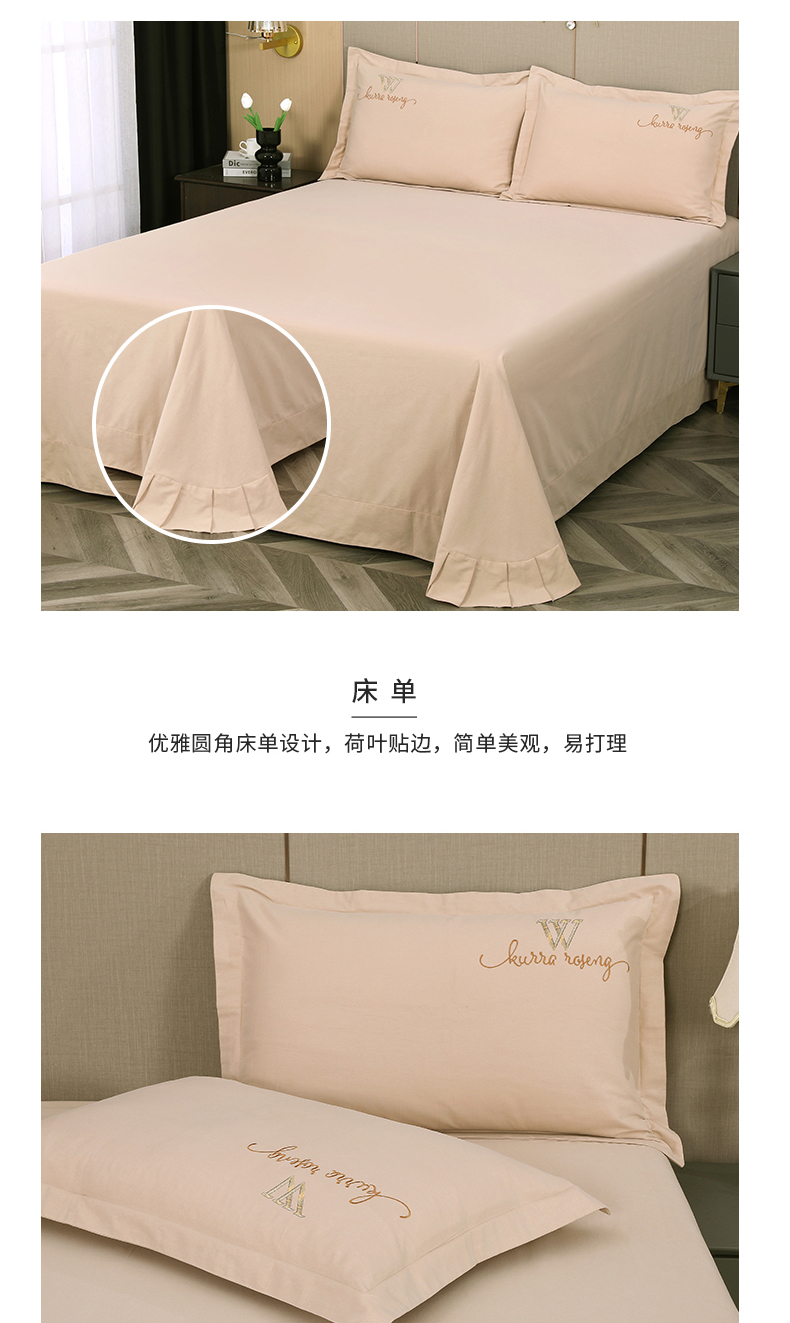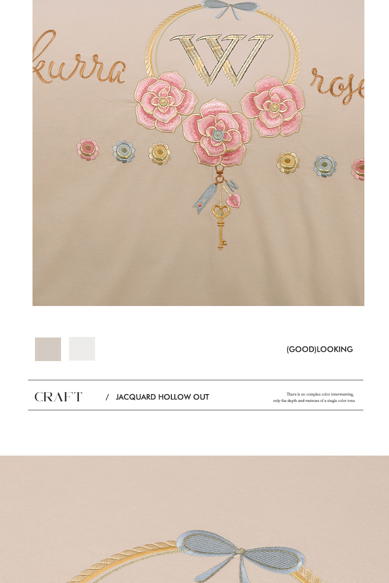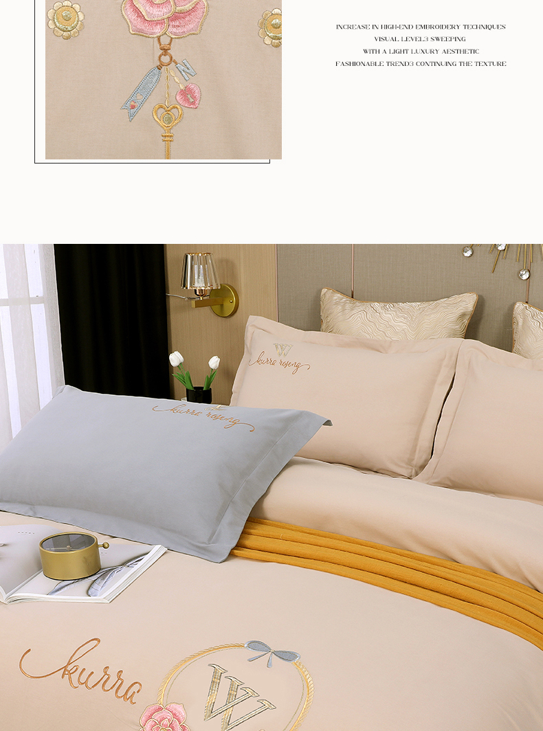 2026秋冬新品全棉磨毛刺绣120支四件套系列-玫瑰庄园 玫瑰庄园-米驼