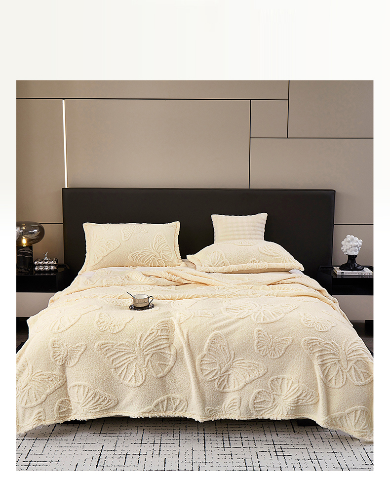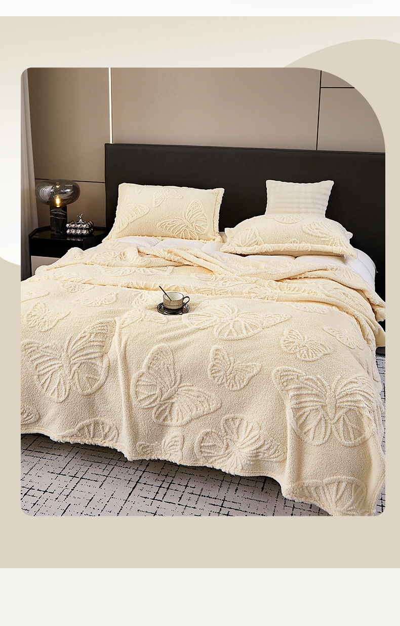 肖恩毯业 2025新款加厚高克重塔芙绒提花毛毯-蝴蝶系列 蝴蝶-奶油白