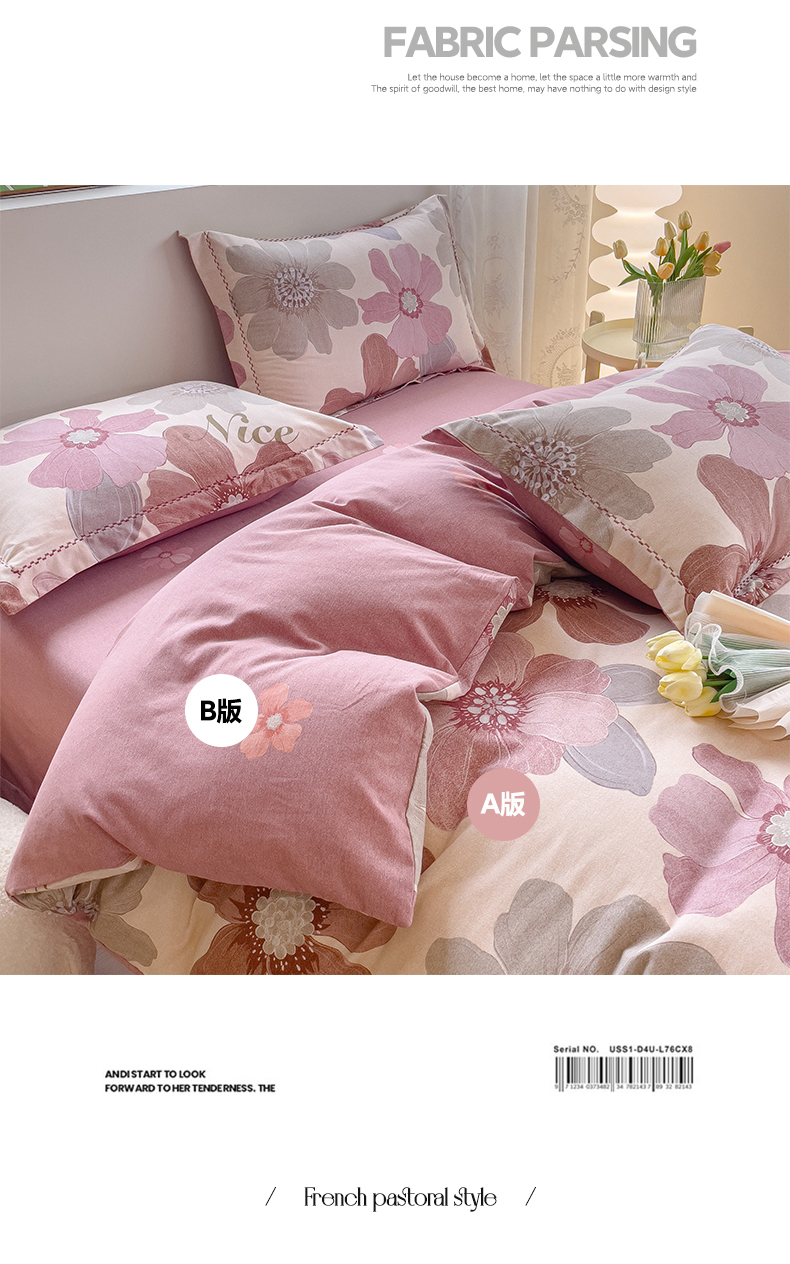 (总)帅露家纺 2025新款A类棉麻活性印染四件套系列,花间意境-红,花间意境-灰,花香满园-红,素锦-咖,香叶时代,映霜-灰,映霜-绿