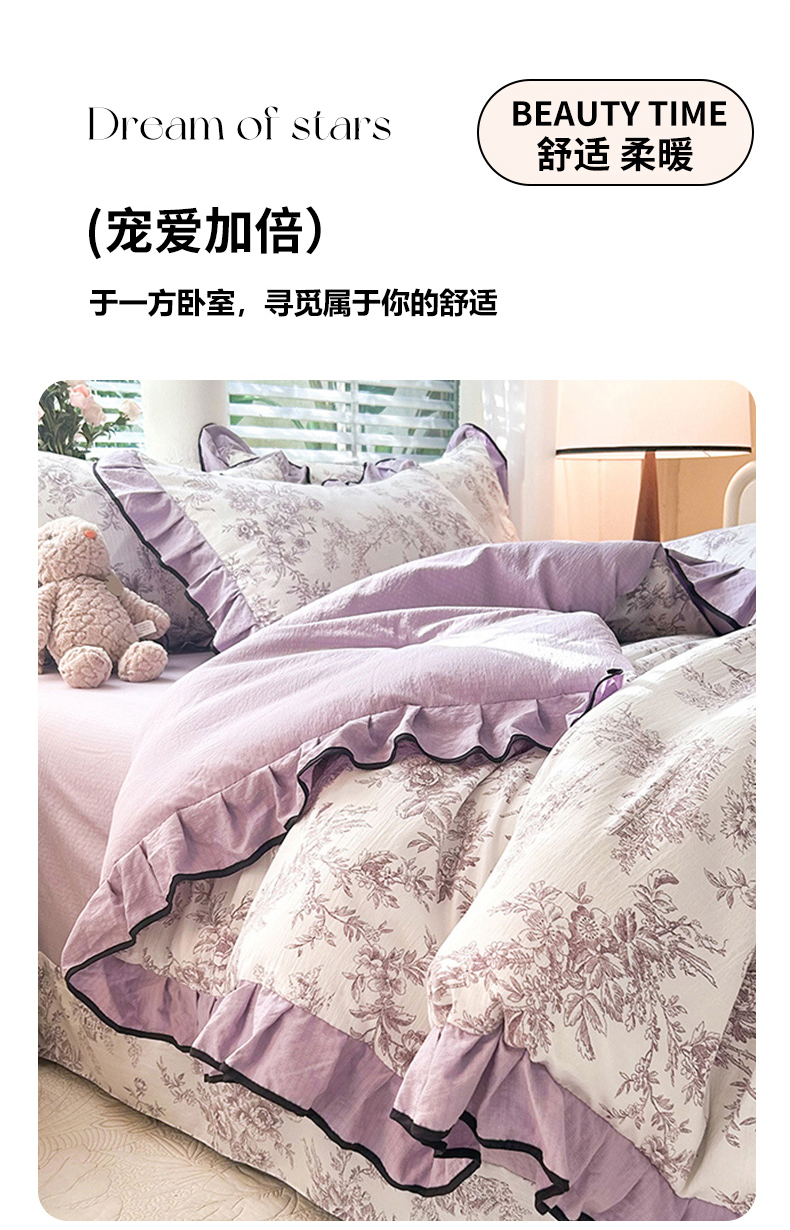 (总)韩约家纺 2025新款1皱皱纱花边夏被四件套,朝花夕拾,安娜花园,邦尼,浮生如梦,海盐苏打,花季如梦,花开蝶舞,连理枝,罗纳星河,奶油波波,南薇,糖仔爱宠,仙语草玲,小爱恋,星河派对,星奈