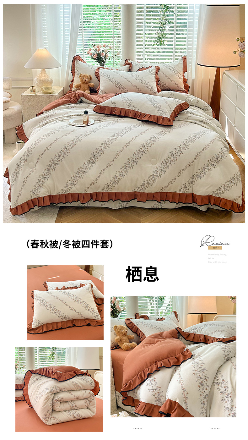 • 91家纺网 家纺一手货源 找家纺 韩约家纺 2025新款1针织棉皱皱纱床单款夏凉被春秋被冬被四件套 栖息