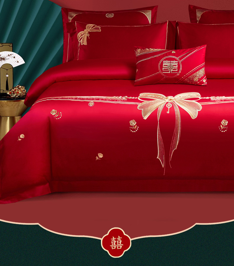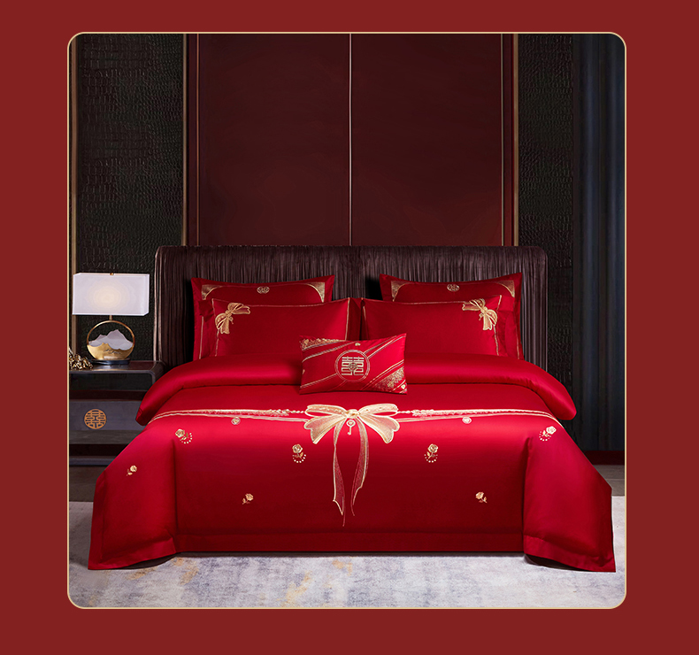 当前位置: 91家纺网 > 商品网购 > 床品套件 > 四件套 > 全棉普通四件套 > 2025新款40s全棉长绒棉新中式刺绣婚庆四件套多件套 蝶恋花
