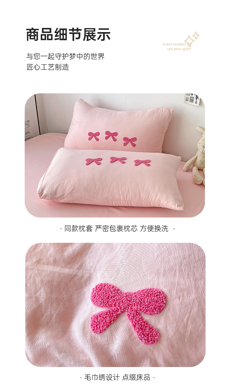 当前位置: 91家纺网 > 商品网购 > 床品套件 > 四件套 > 水洗棉四件套 > 森璐家纺 2024新款1水洗棉毛巾绣四件套蝴蝶结学生宿舍三件套(含买家秀) 蝴蝶结-粉玫