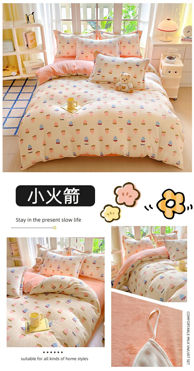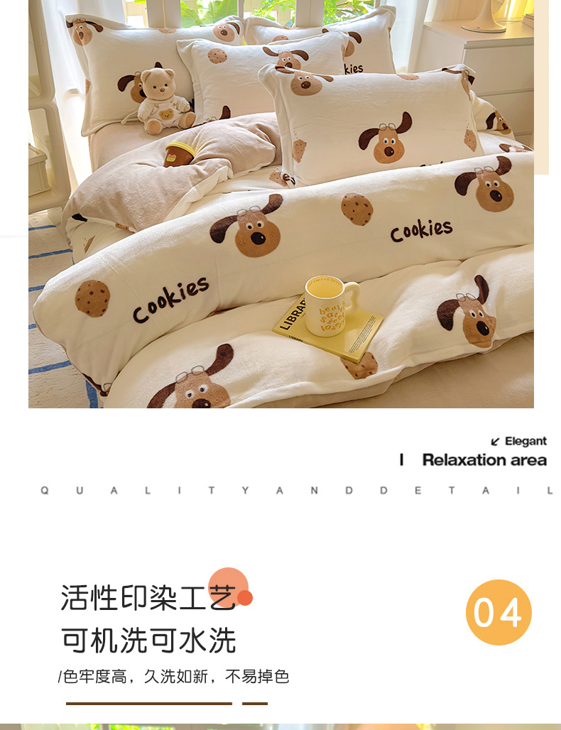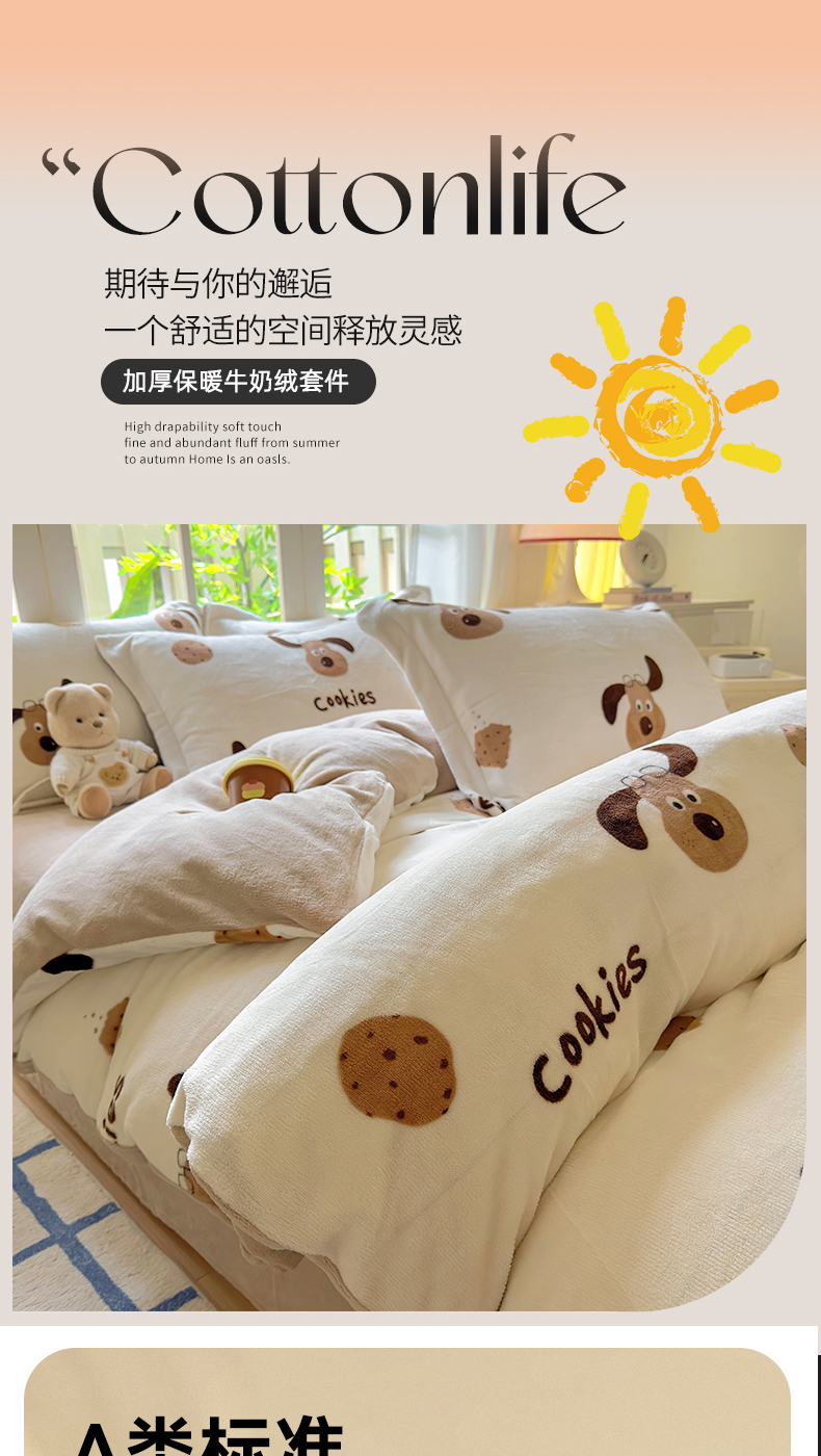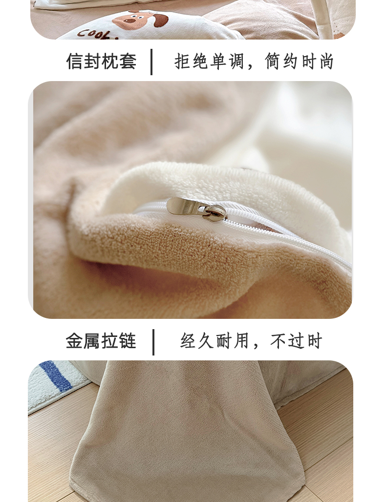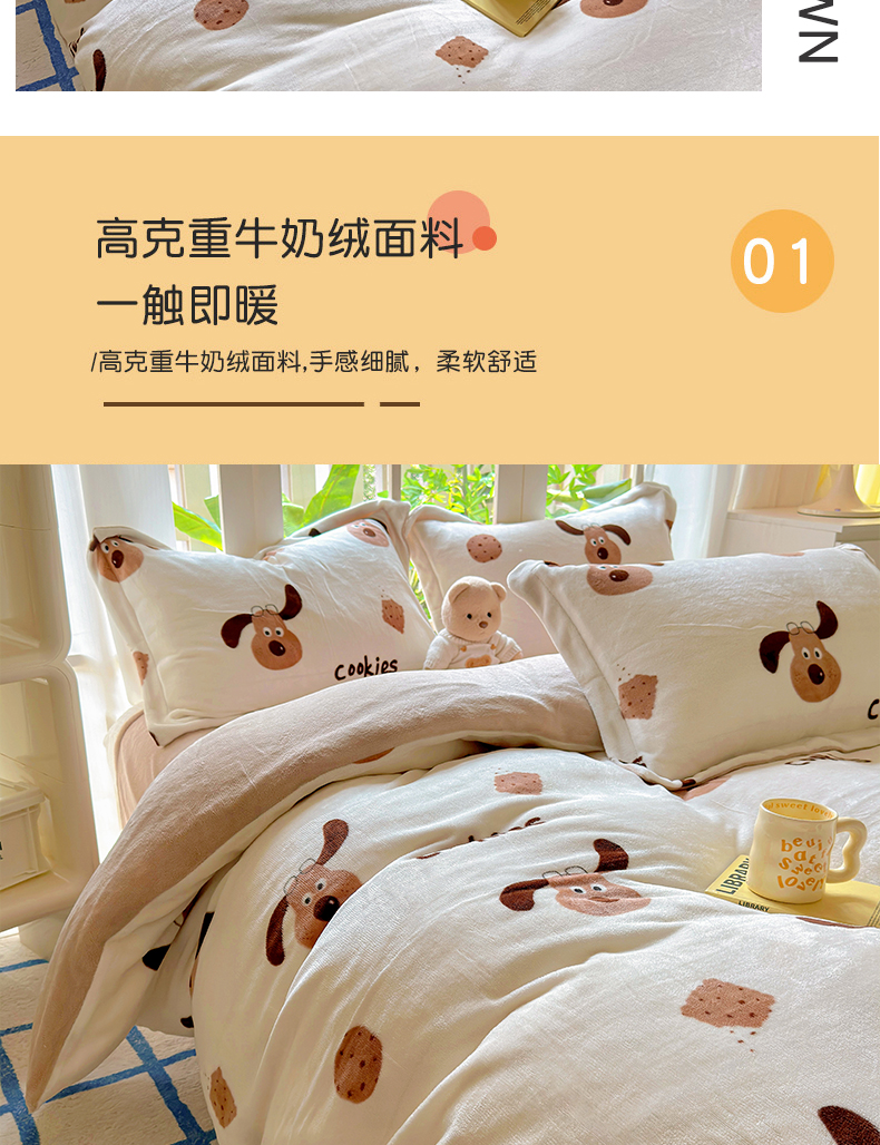 当前位置: 91家纺网 > 商品网购 > 床品套件 > 四件套 > 牛奶绒四件套 > 百寐 2024新款加厚A类牛奶绒印花卡通床单床笠四件套三件套 开心狗狗