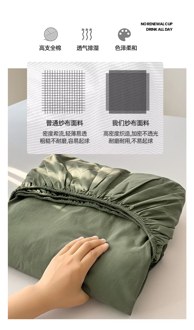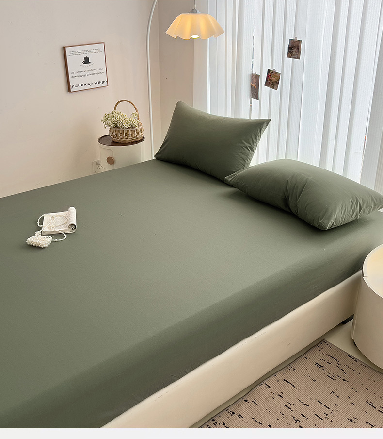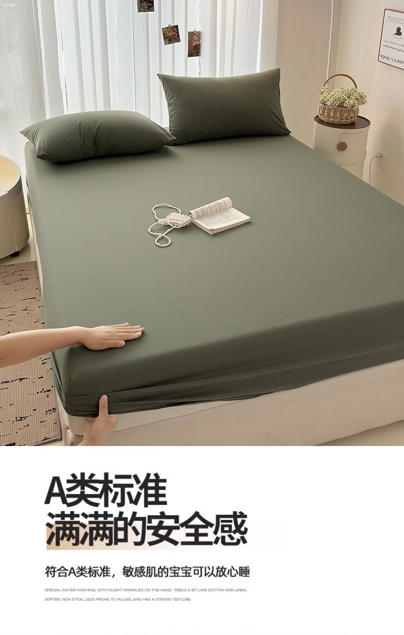 卡普二店 2024新款A类纯棉水洗棉单床笠墨绿