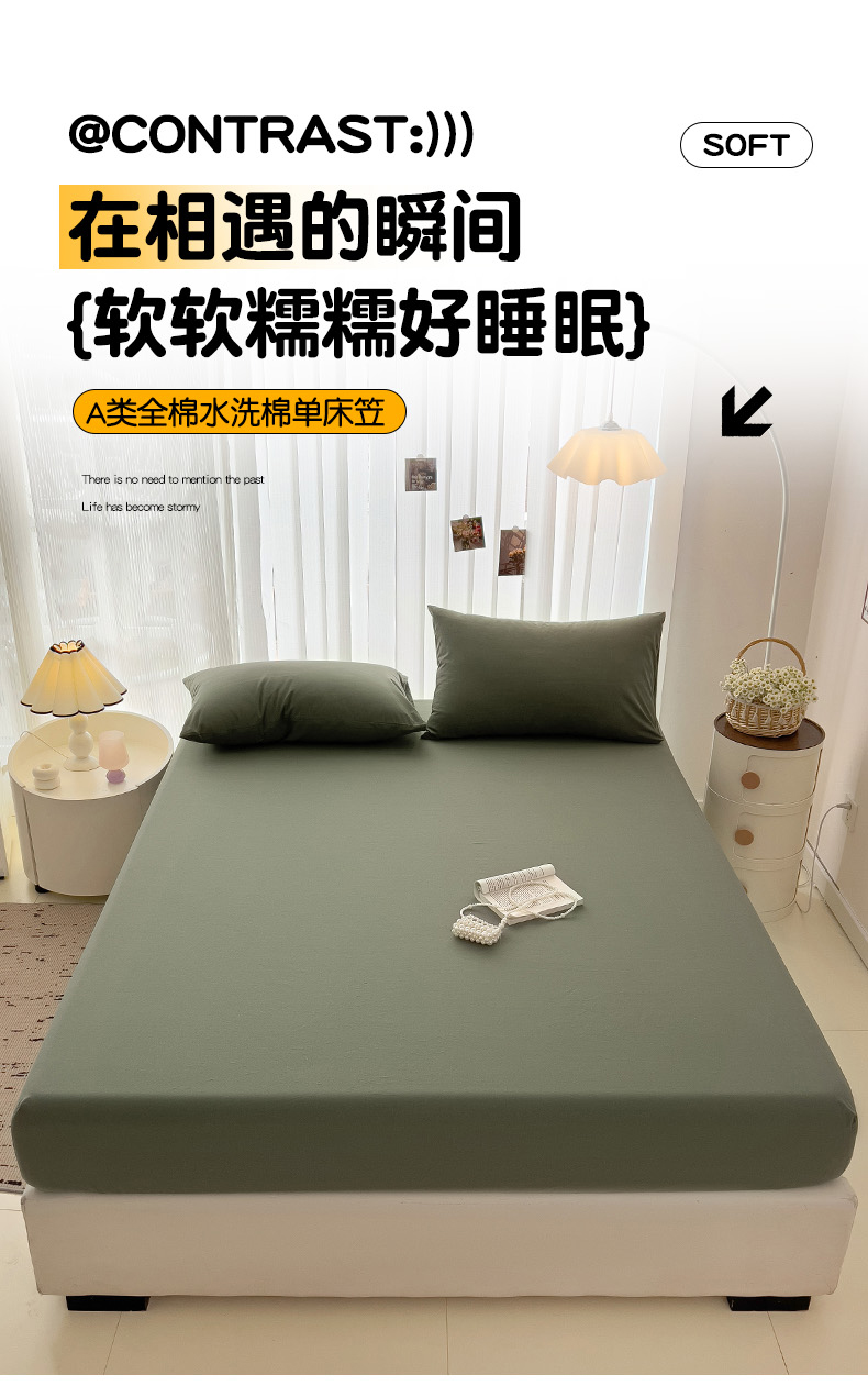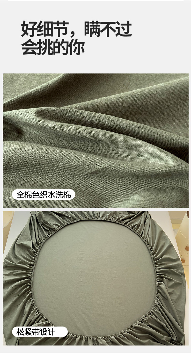 商品名称:卡普二店 2024新款A类纯棉水洗棉单床笠墨绿