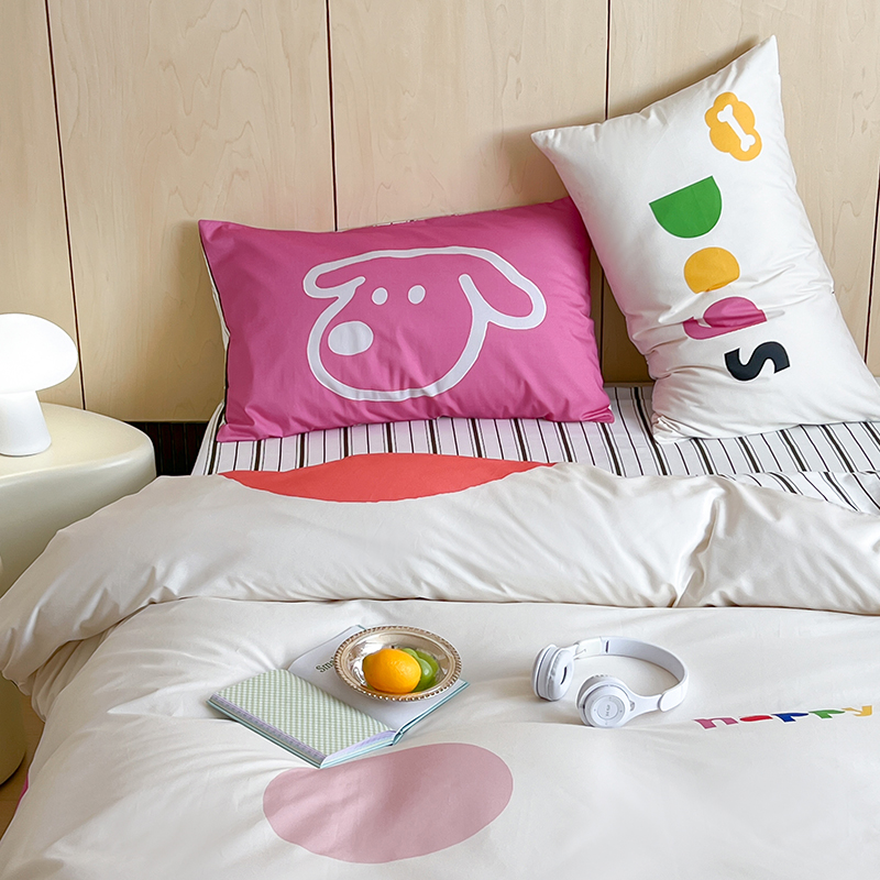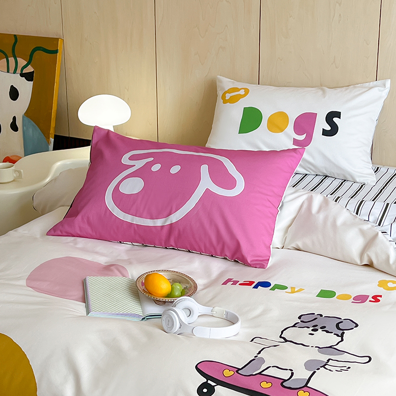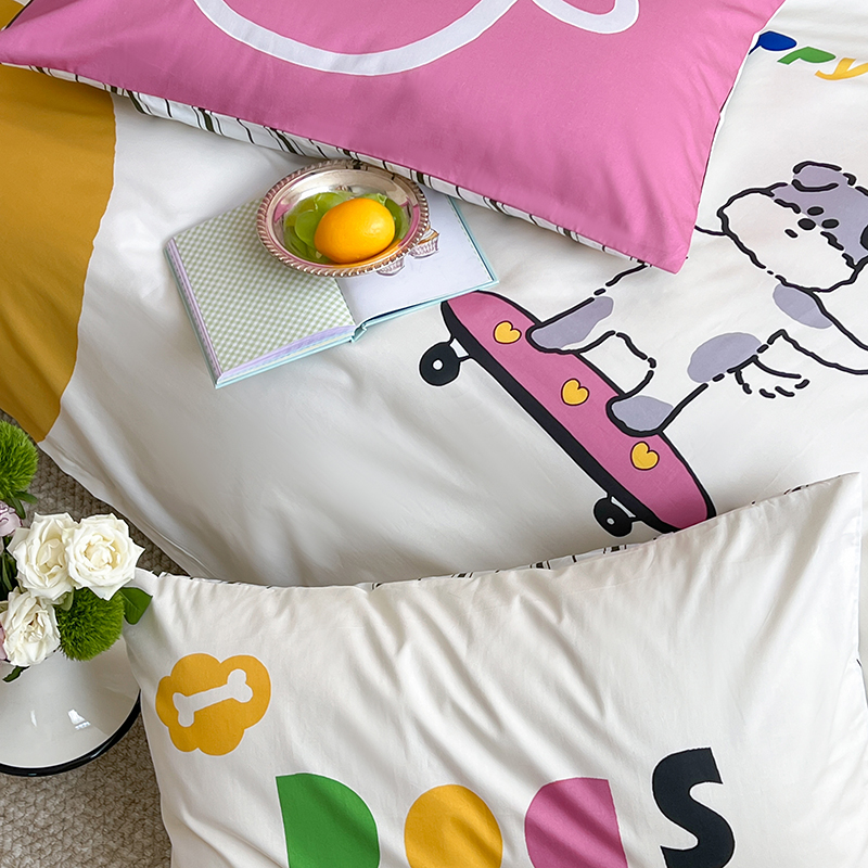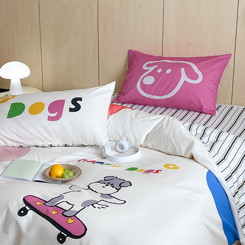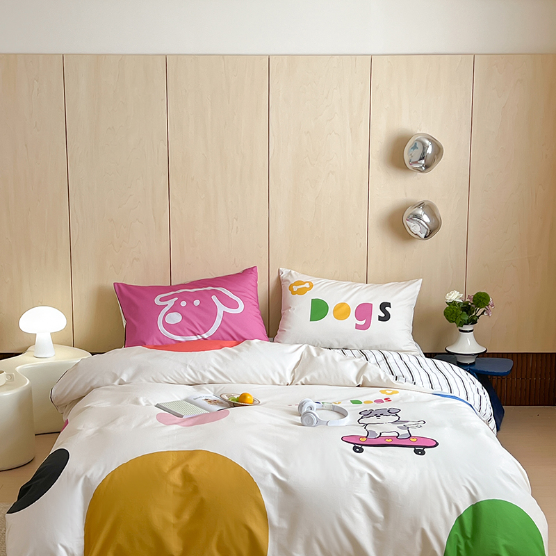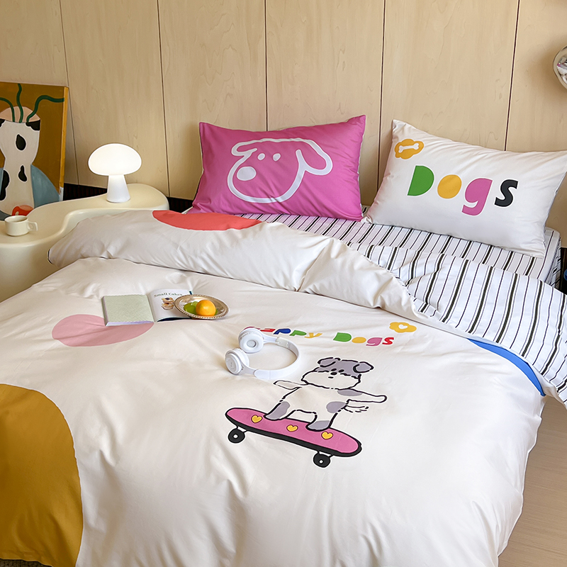 2024新款40S设计师款全棉大版趣味印花系列四件套 滑板小狗