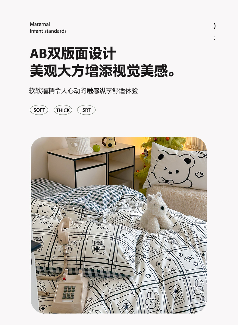 (总)时年家纺 2025新款全棉磨毛大版卡通印花系列套件,趣味熊,爱心熊,安静小象,波点兔,可爱熊宝,萌宝,奶油玩偶,小奥汀,慵懒猫咪