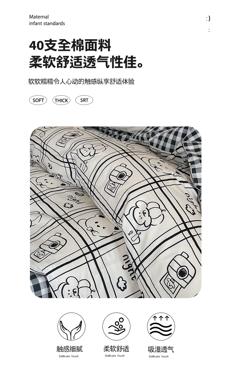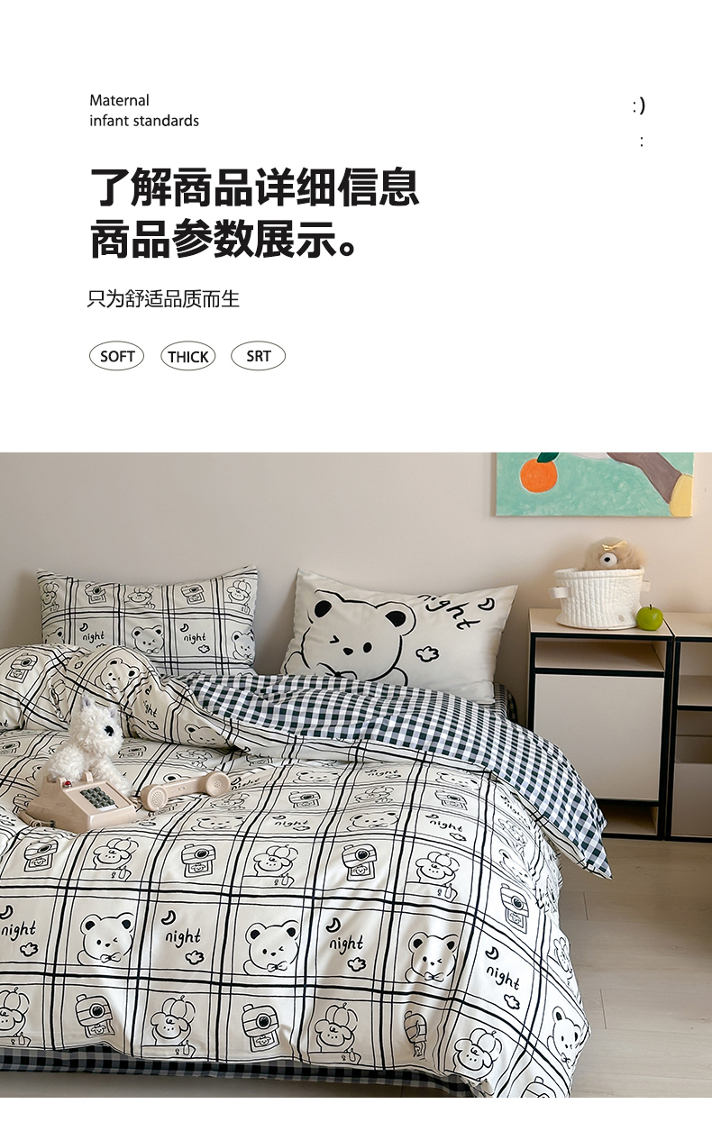 商品名称:2024新款40支13372全棉数码大版趣味系列四件套 俏皮小熊