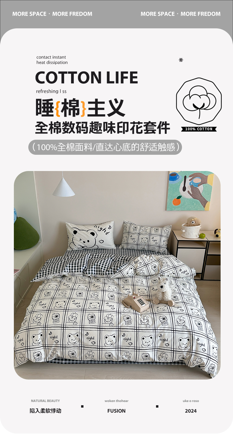 2024新款40支13372全棉数码大版趣味系列四件套 俏皮小熊