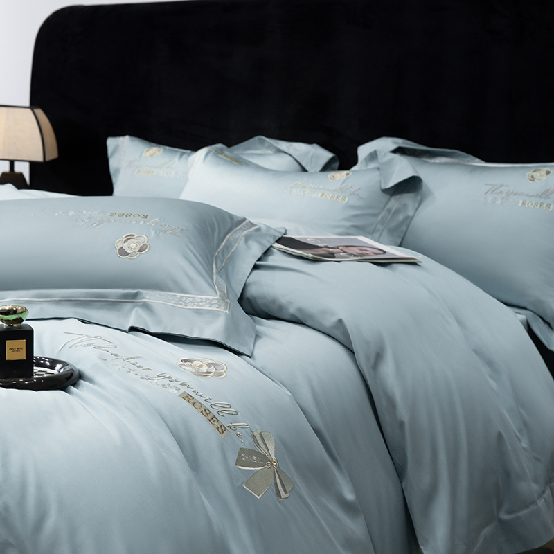 (总)绒博士 2025新款270克牛奶绒双拼角刺绣宽边款四件套--维也纳系列,维也纳-粉豆沙,维也纳-果绿,维也纳-浅咖,维也纳-浅蓝