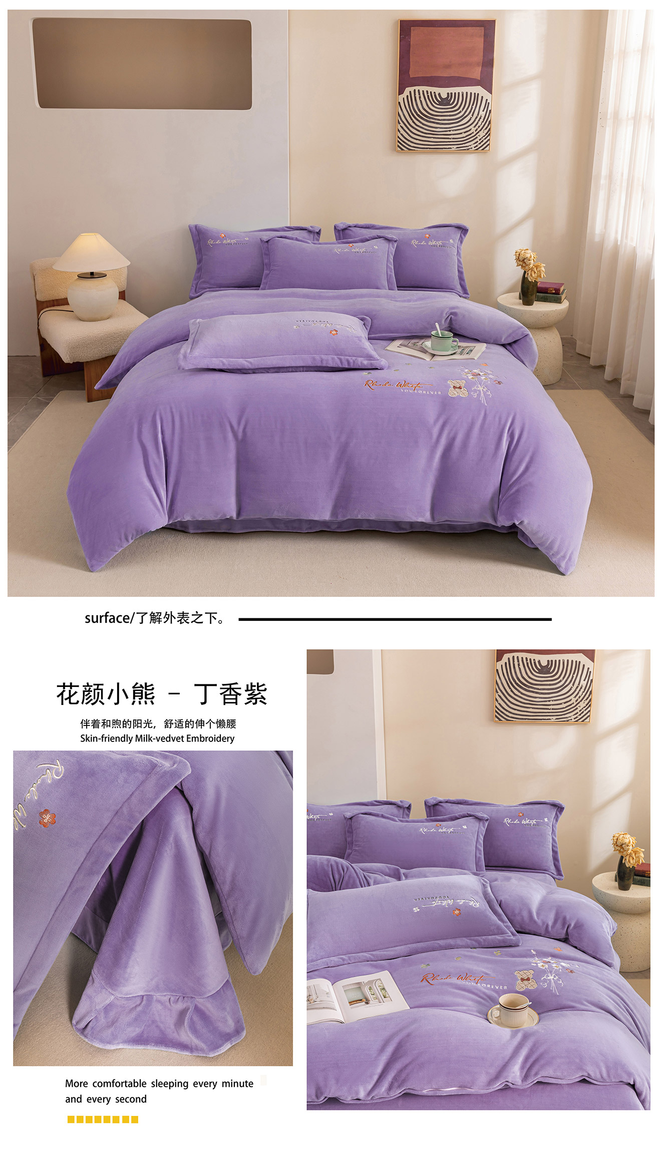 (总)绒博士 2025新款220克牛奶绒刺绣三件套--欧拉系列,欧拉-宾利蓝,欧拉-芳菲紫,欧拉-灰色,欧拉-奶绿,欧拉-樱花粉