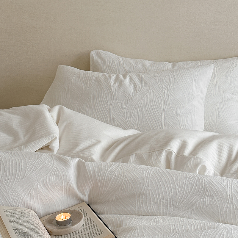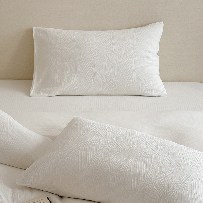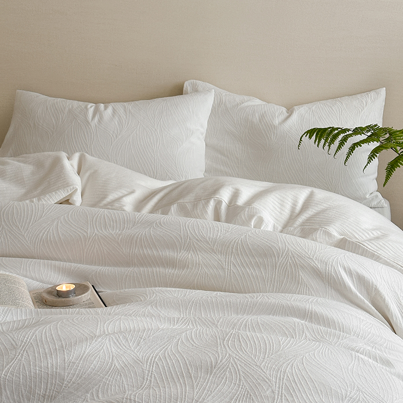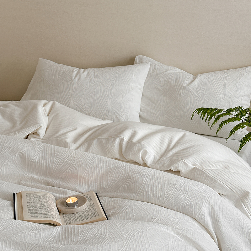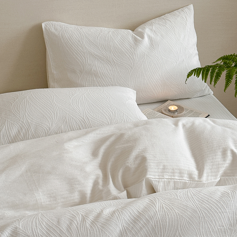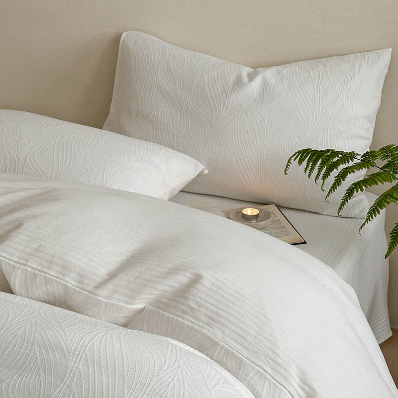 (总)梦享生活家居 2025新款白色全棉肌理纹提花四件套,白露,简云,流年,莫语,曲线
