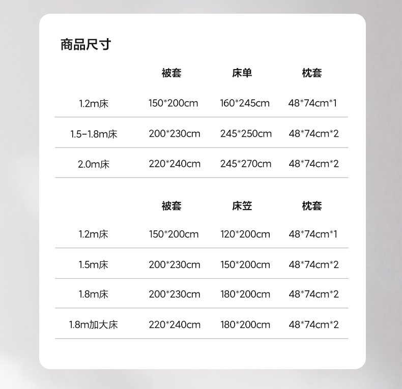 1.8m被套加大床笠款四件套 | ¥190.00 |