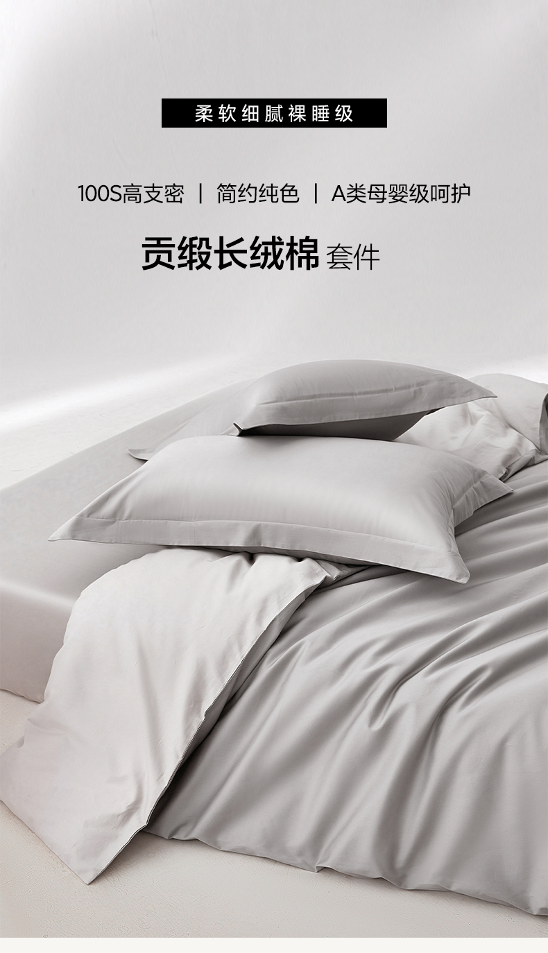 当前位置: 91家纺网 > 商品网购 > 床品套件 > 四件套 > 长绒棉四件套 > 轩和家居 2024新款简约纯色50s长绒棉贡缎四件套 雅士灰+迷雾灰