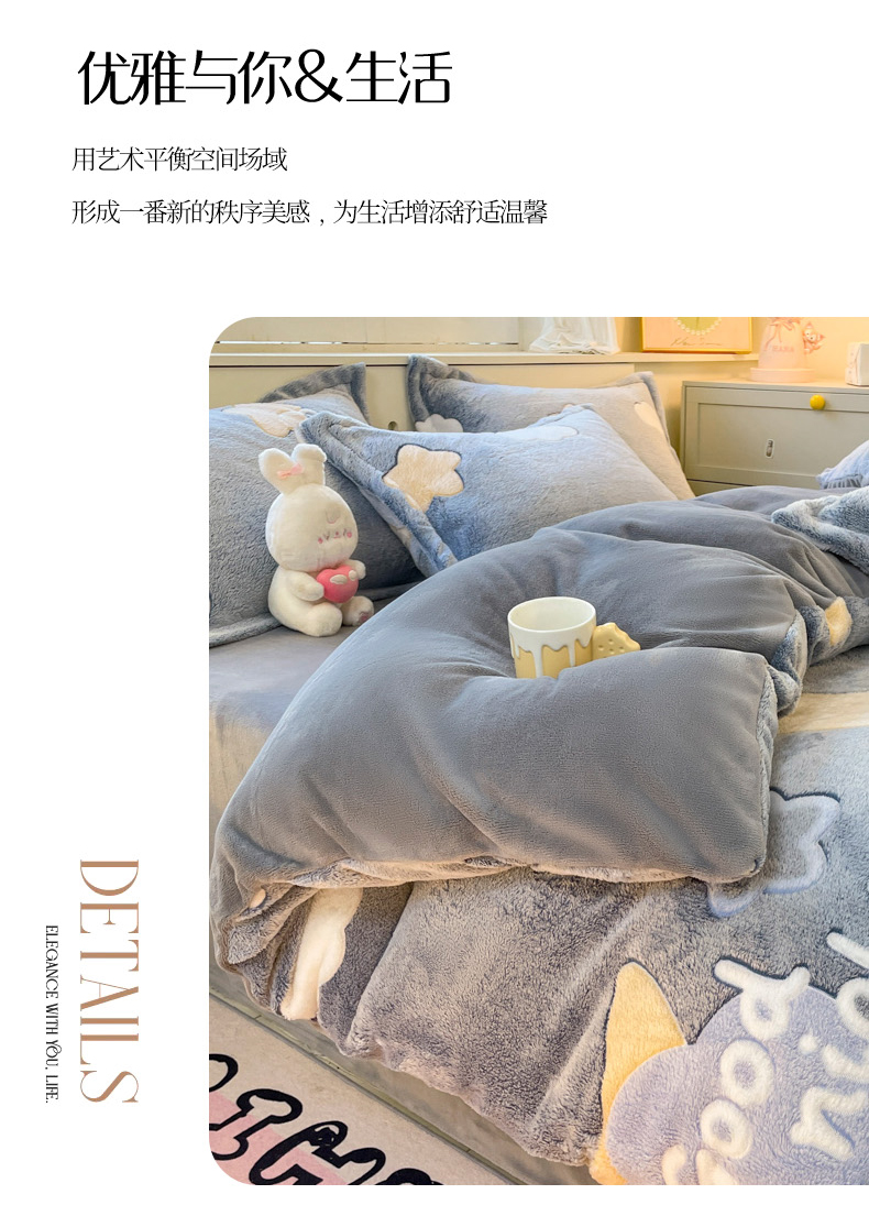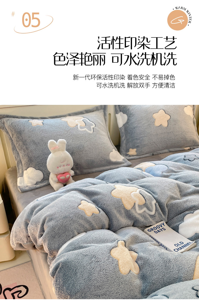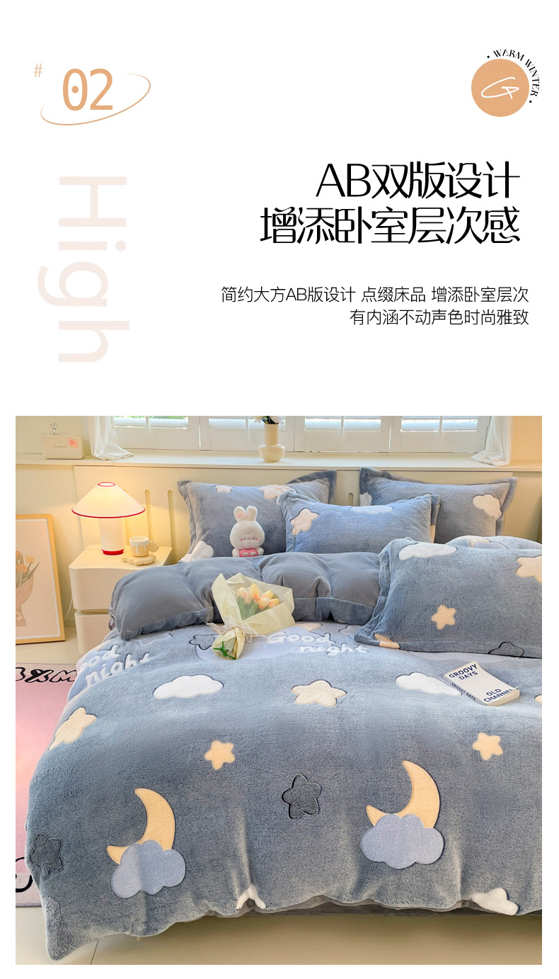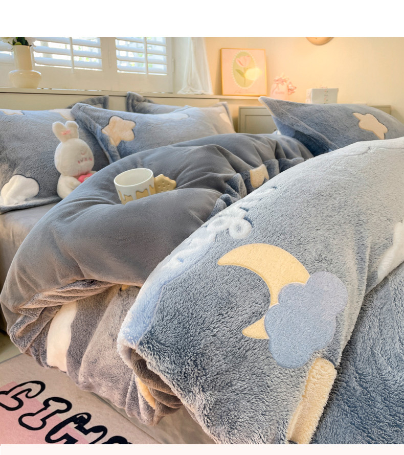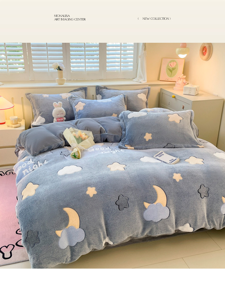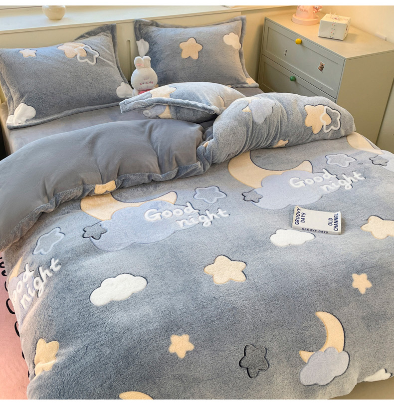 当前位置: 91家纺网 > 商品网购 > 床品套件 > 四件套 > 其它四件套 > 沐慕 2024新款卡通印花雪花绒四件套加厚牛奶绒四件套 星星月亮