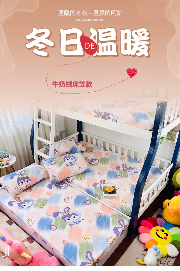 • 91家纺网 家纺一手货源 找家纺 小虾米 2024新款加厚上下床牛奶绒床笠款 星黛兔