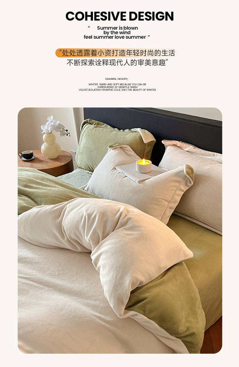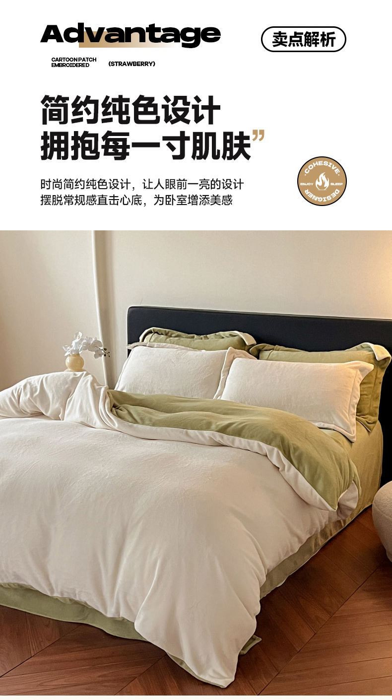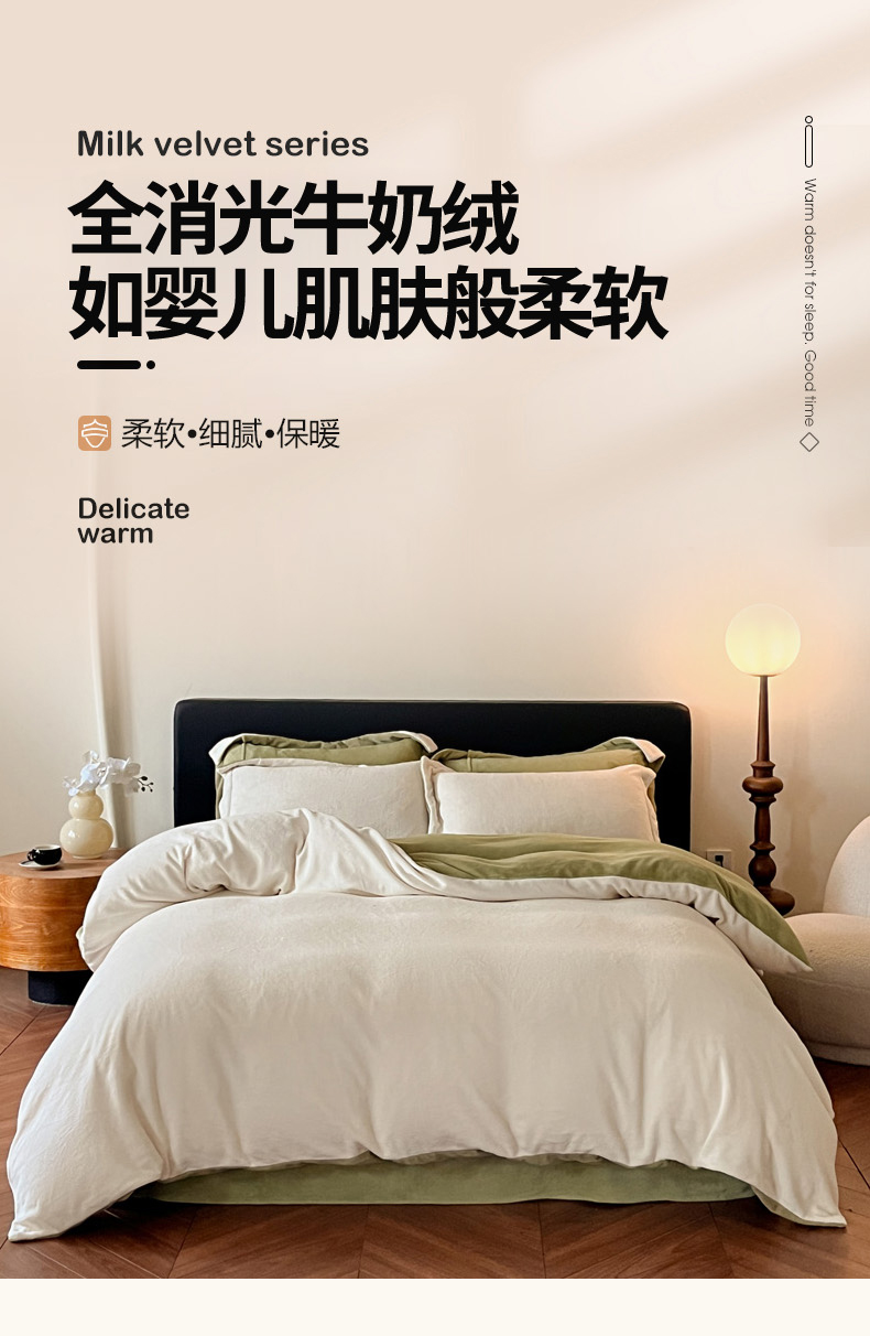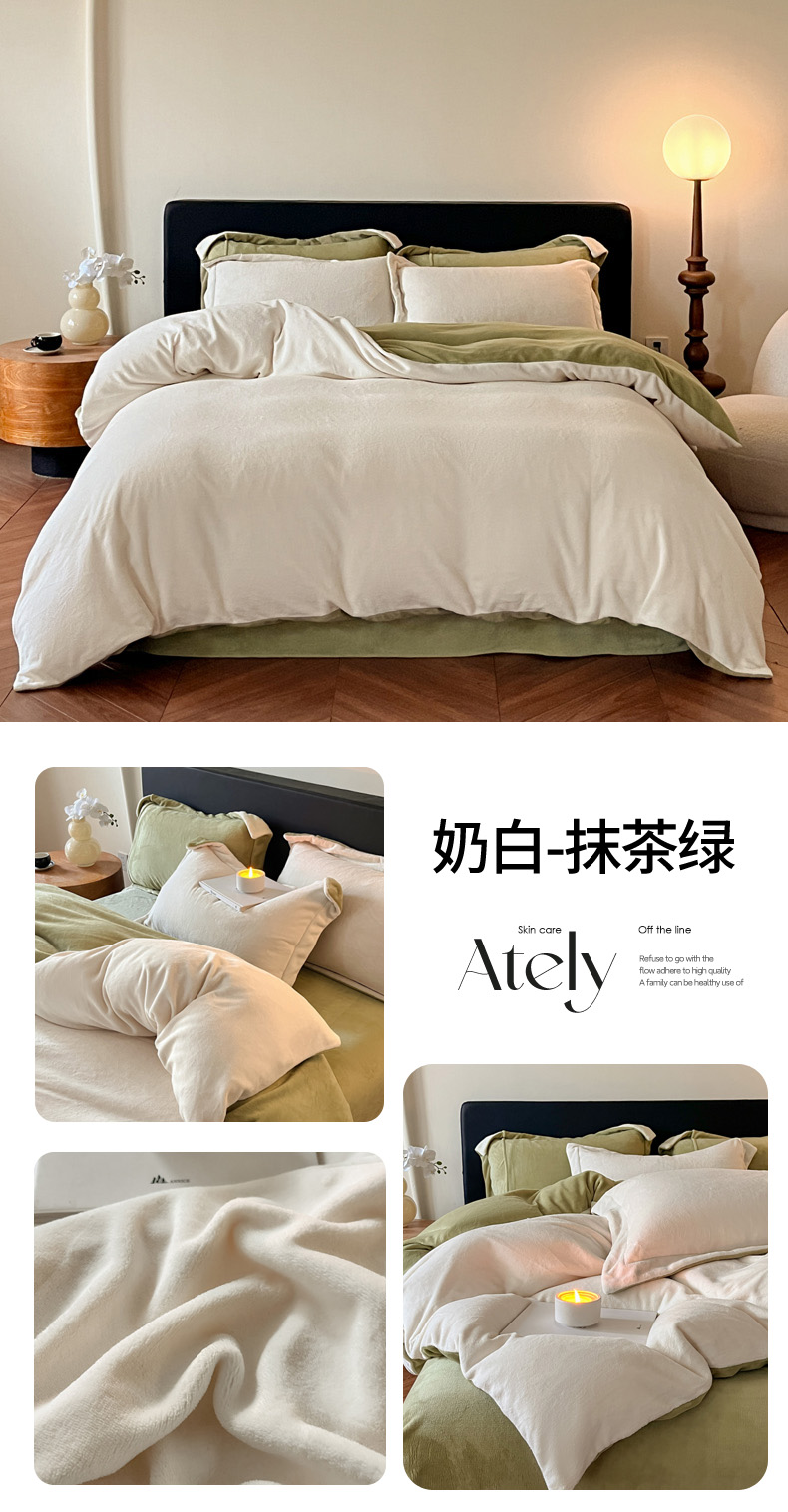 当前位置: 91家纺网 > 商品网购 > 床品套件 > 四件套 > 牛奶绒四件套 > 万盛家纺 2025新款全消光加厚230克牛奶绒拼色四件套 奶白-抹茶绿