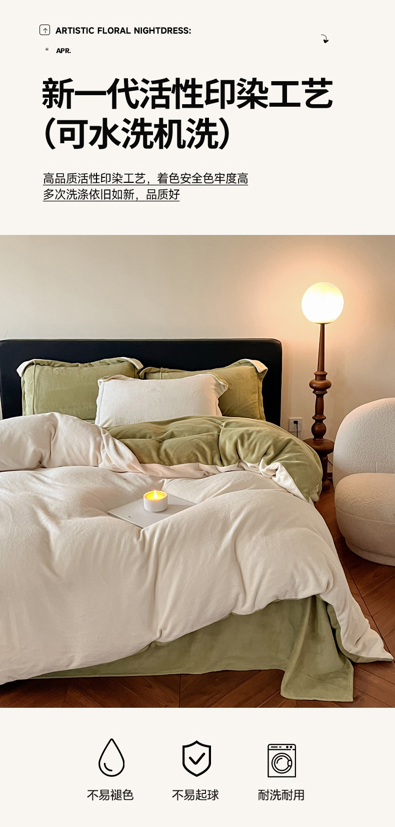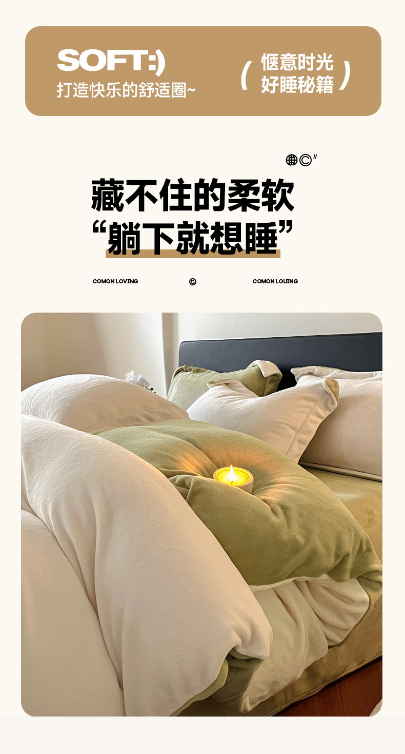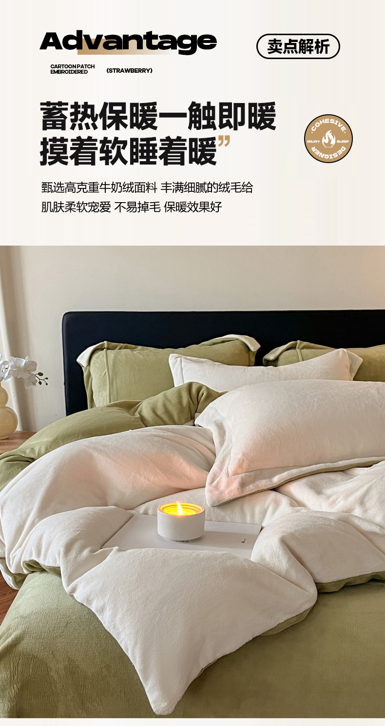 当前位置: 91家纺网 > 商品网购 > 床品套件 > 四件套 > 牛奶绒四件套 > 万盛家纺 2025新款全消光加厚230克牛奶绒拼色四件套 奶白-抹茶绿