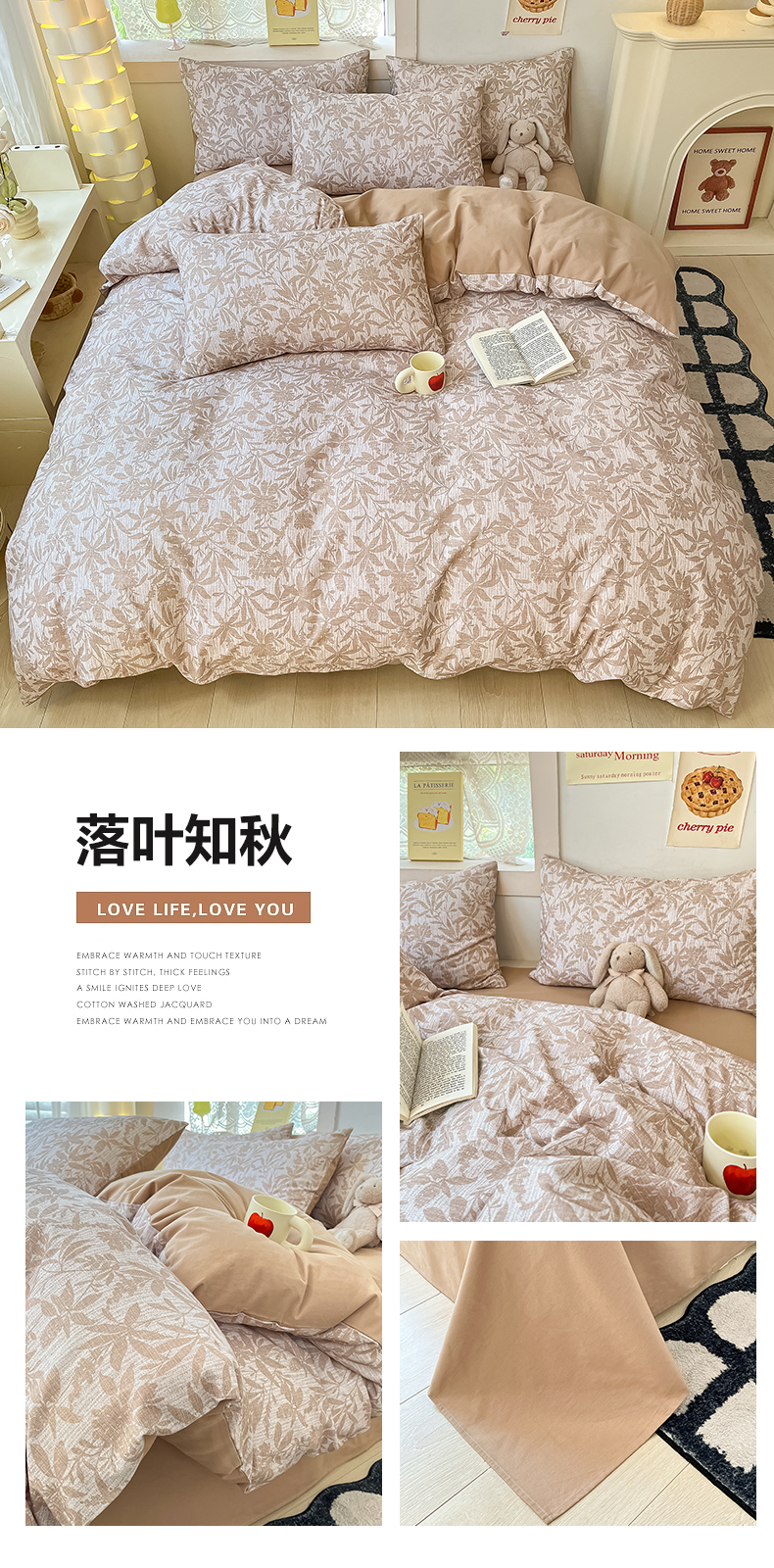 当前位置: 91家纺网 > 商品网购 > 床品套件 > 四件套 > 全棉普通四件套 > 沐辰 2024新款A类全棉磨毛印花四件套-花卉类 落叶知秋