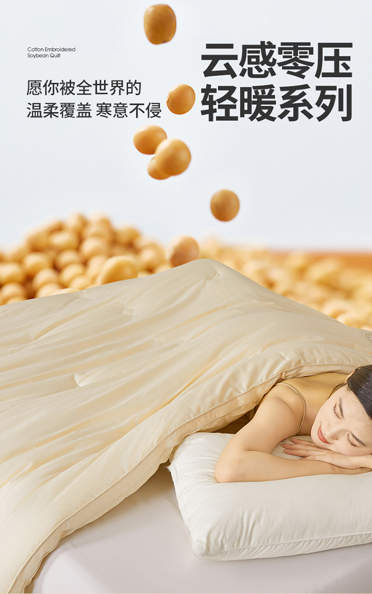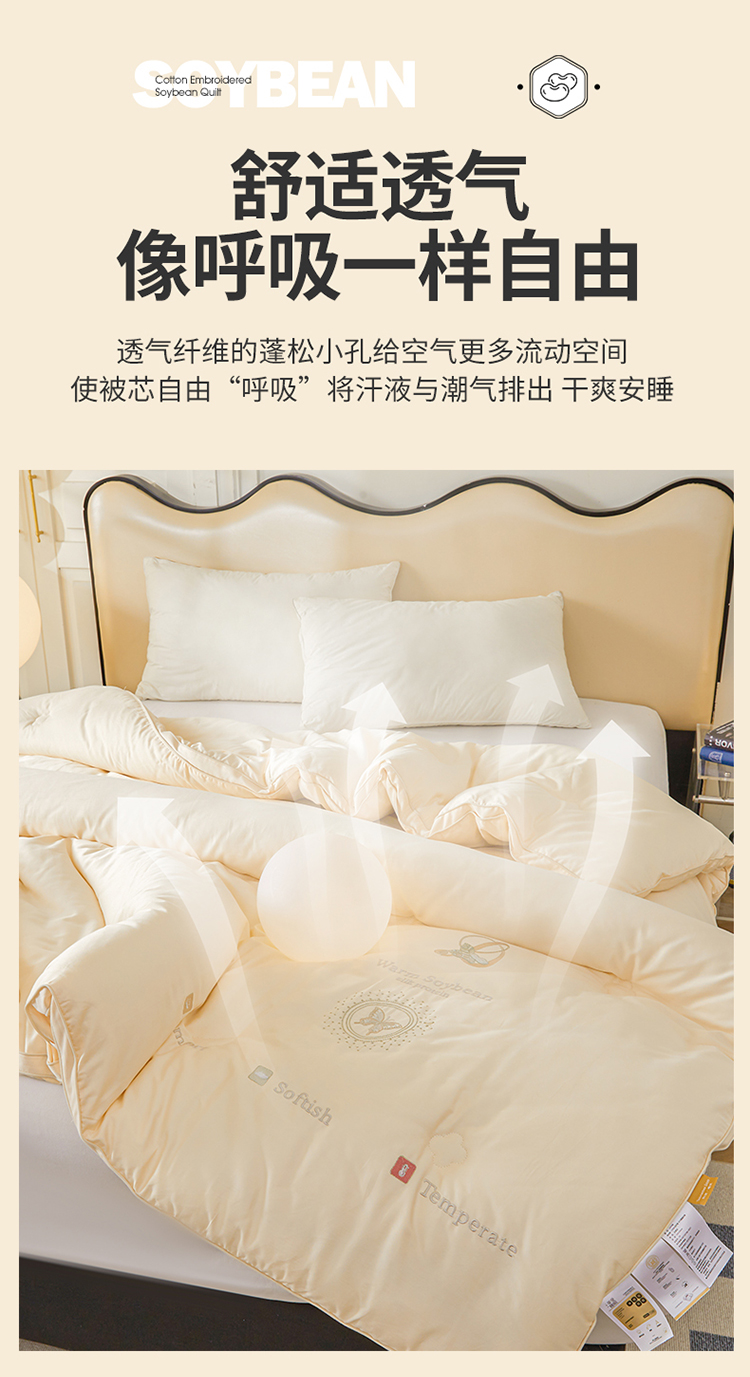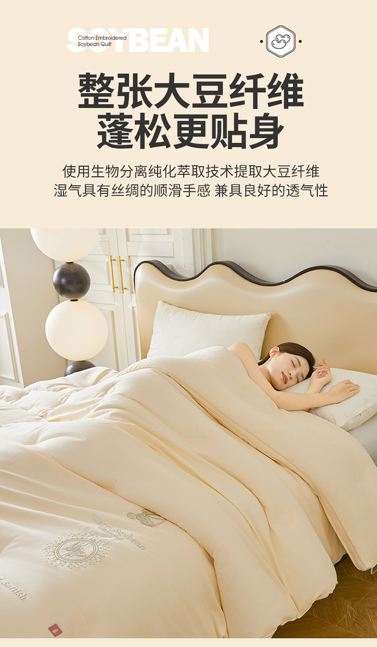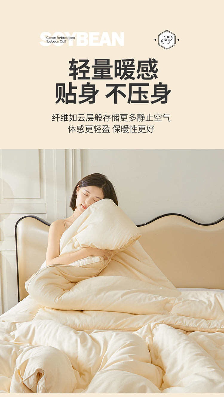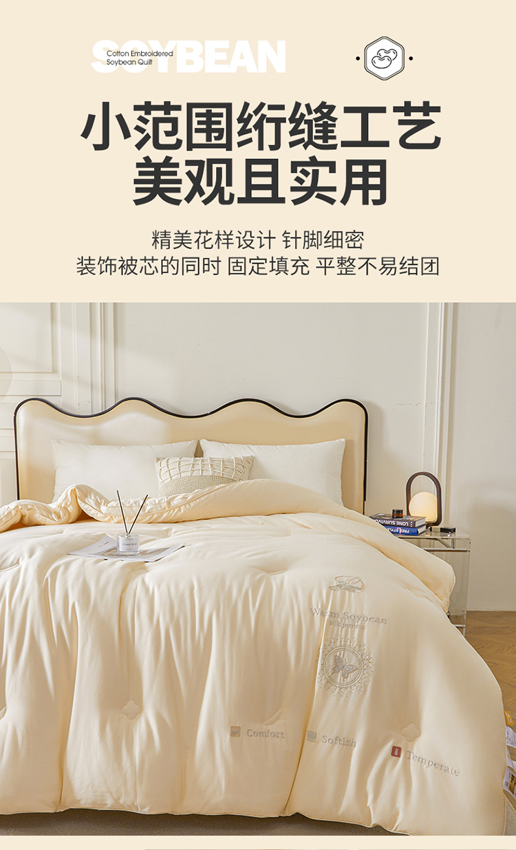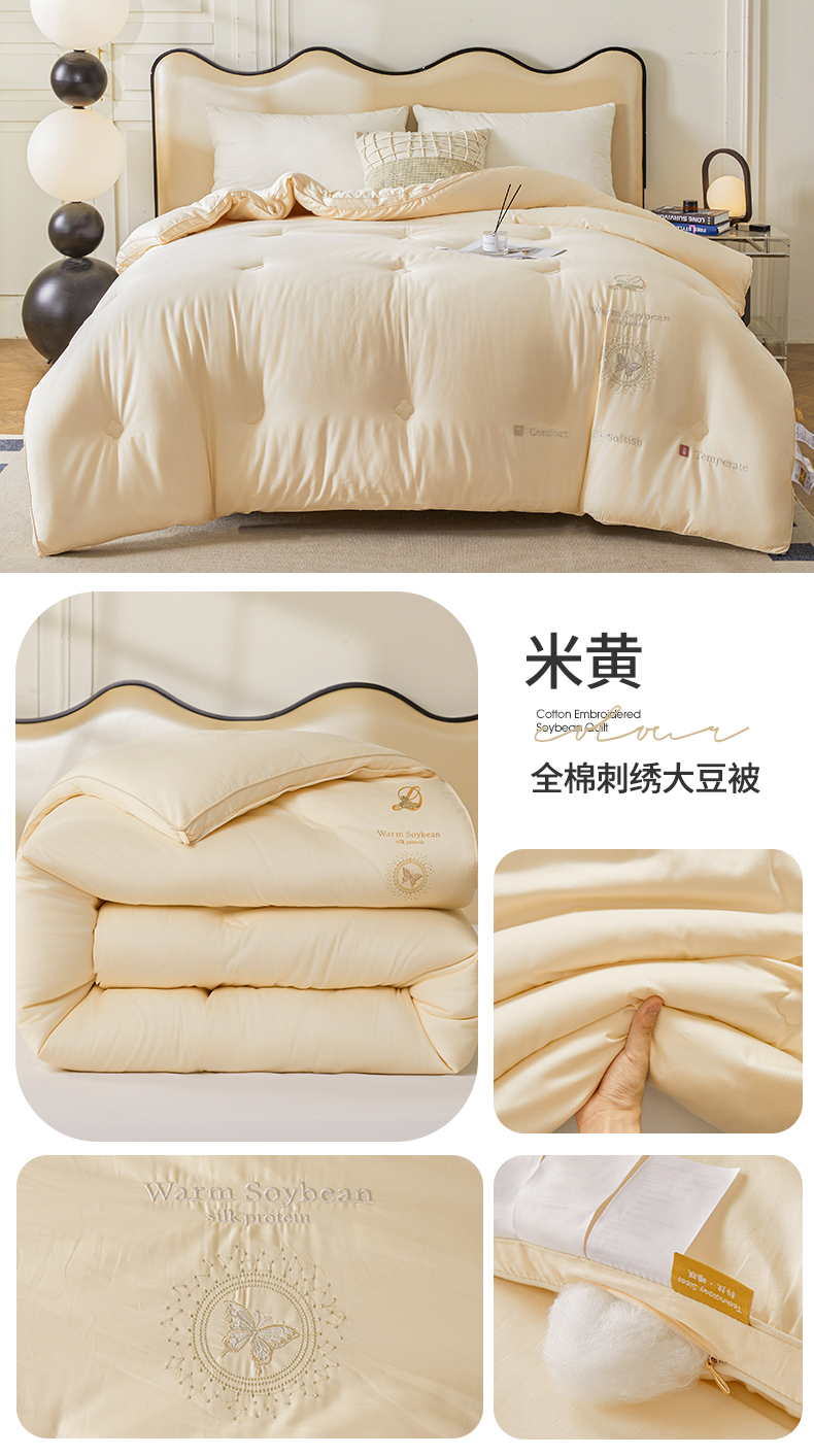 商品名称:2024新款60s全棉绣花冬被全棉冬被立体边被子被芯四季被春秋被夏被大豆被 米黄