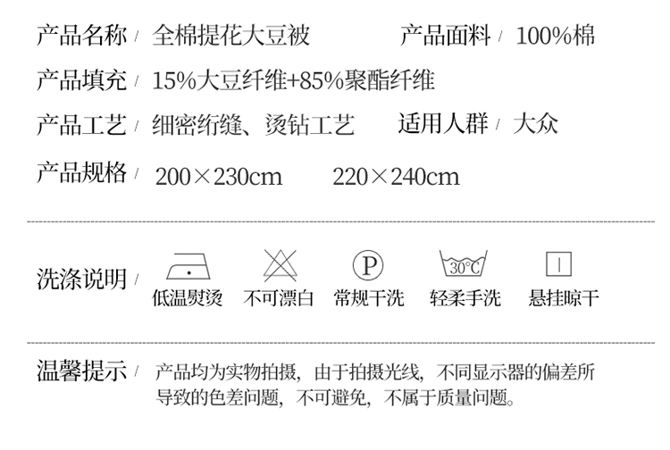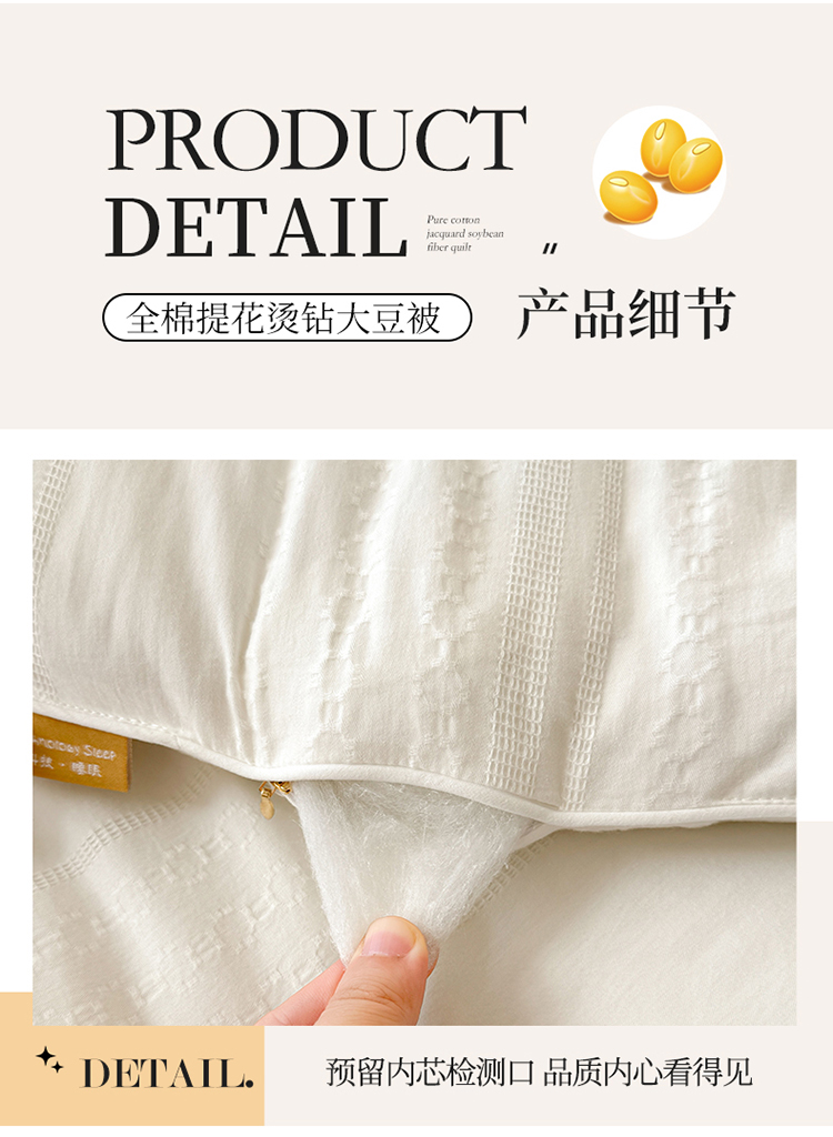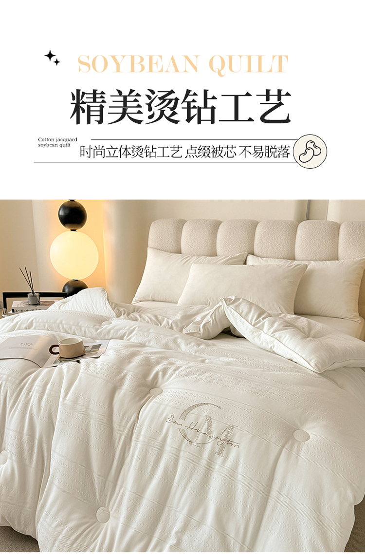 商品名称:2024新款提花冬被全棉冬被烫钻冬被滚绳被子被芯四季被春秋被夏被大豆被 素雅 本白