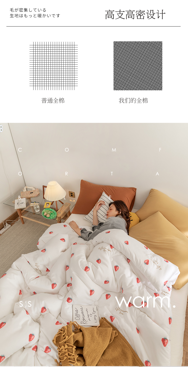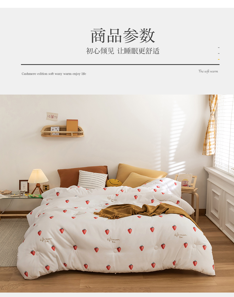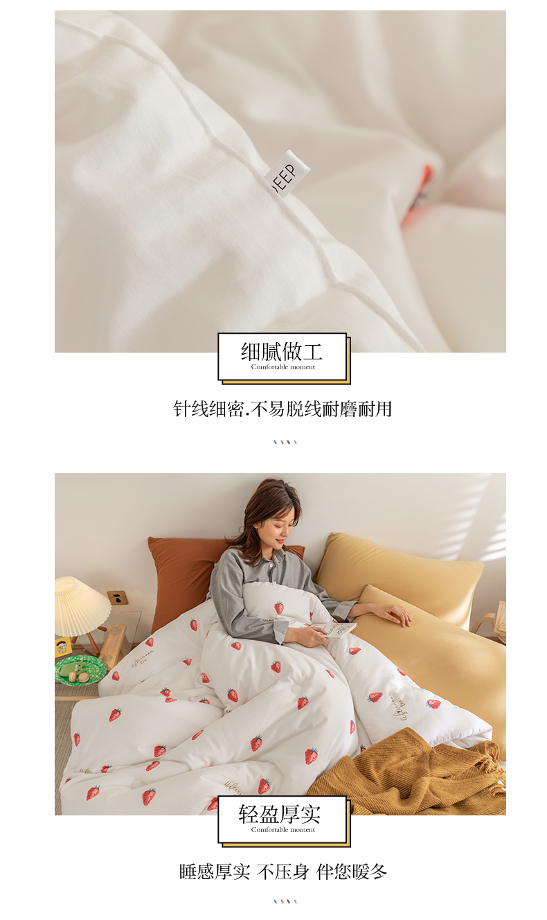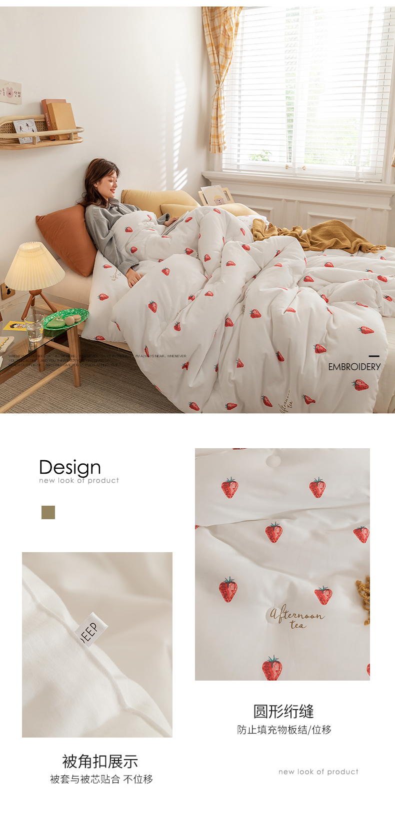 • 91家纺网 家纺一手货源 找家纺 莱福仕家纺 2024新款全棉13070四季被冬被被子被芯 夏日草莓白