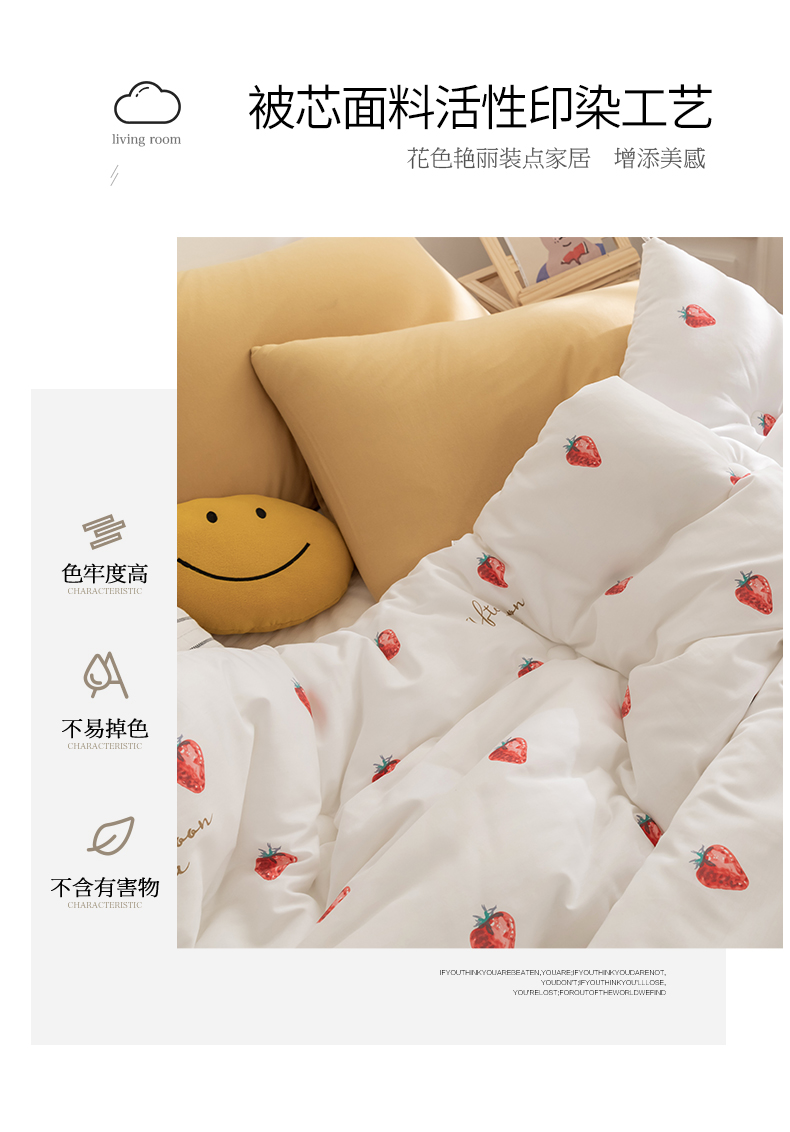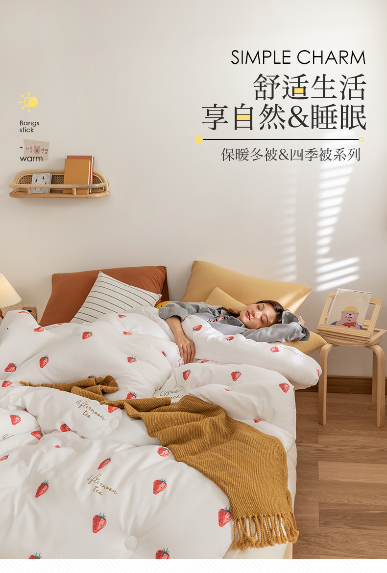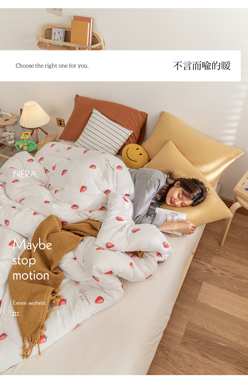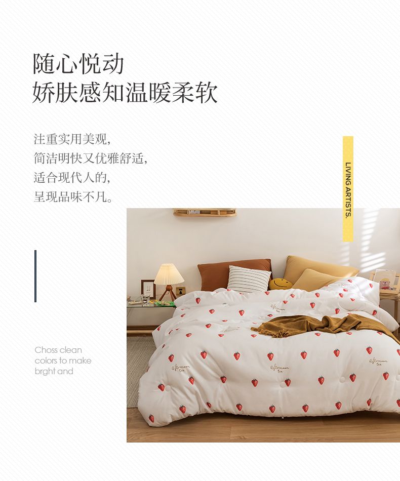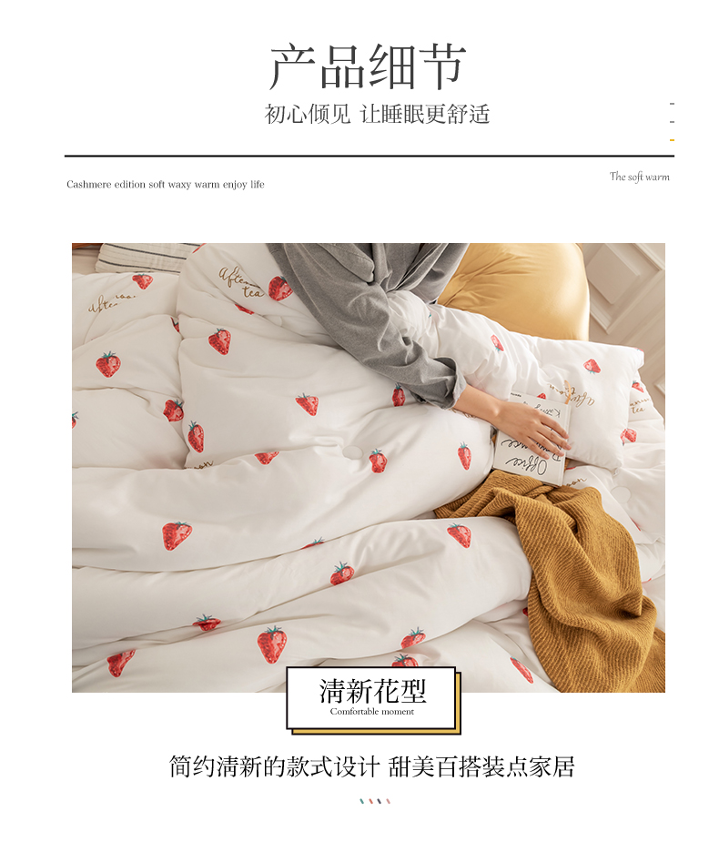 • 91家纺网 家纺一手货源 找家纺 莱福仕家纺 2024新款全棉13070四季被冬被被子被芯 夏日草莓白