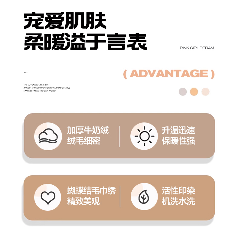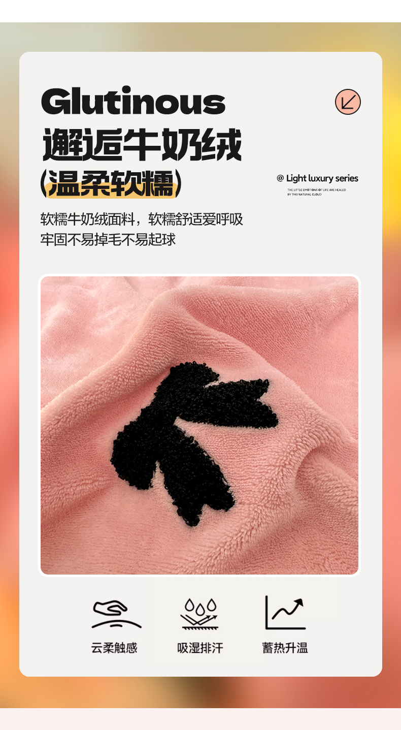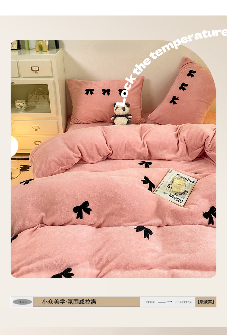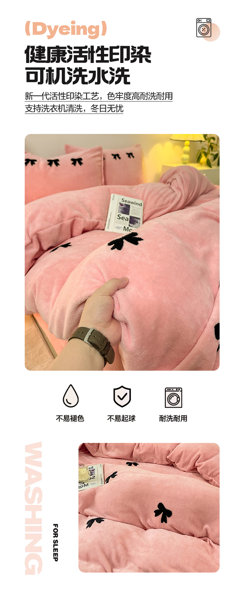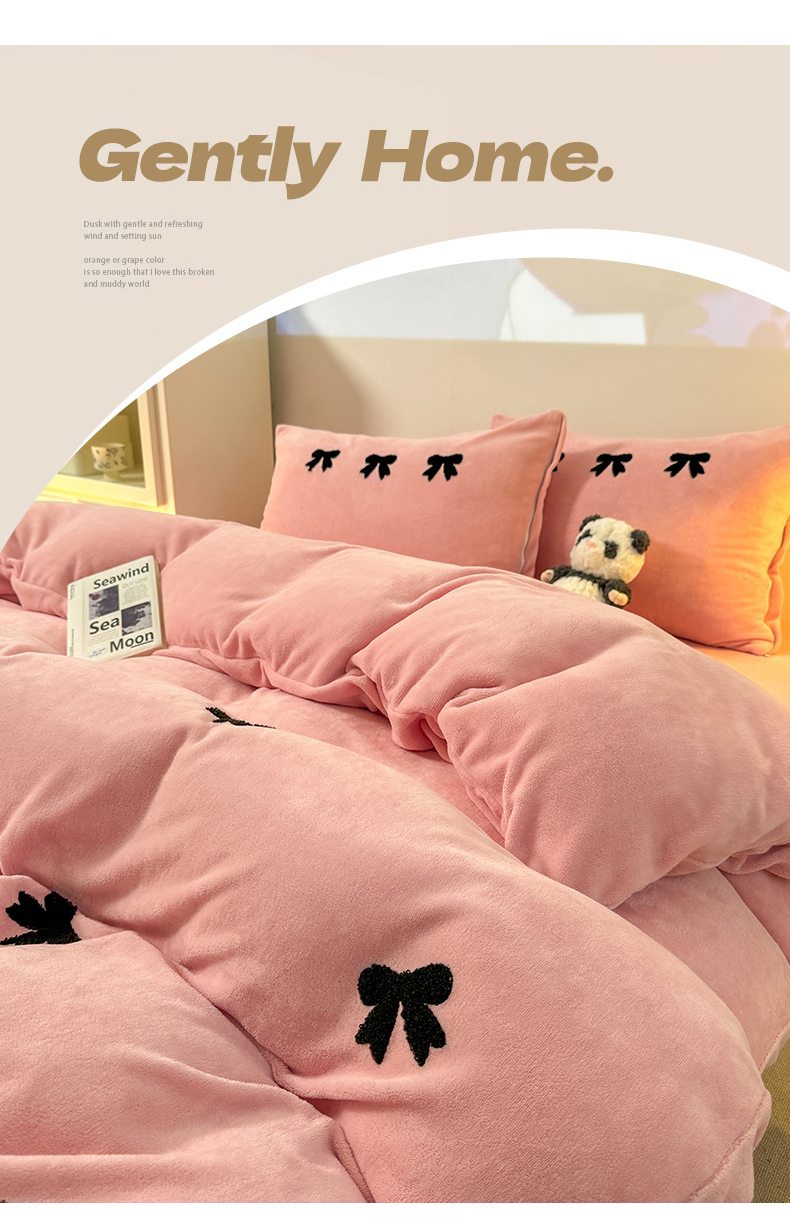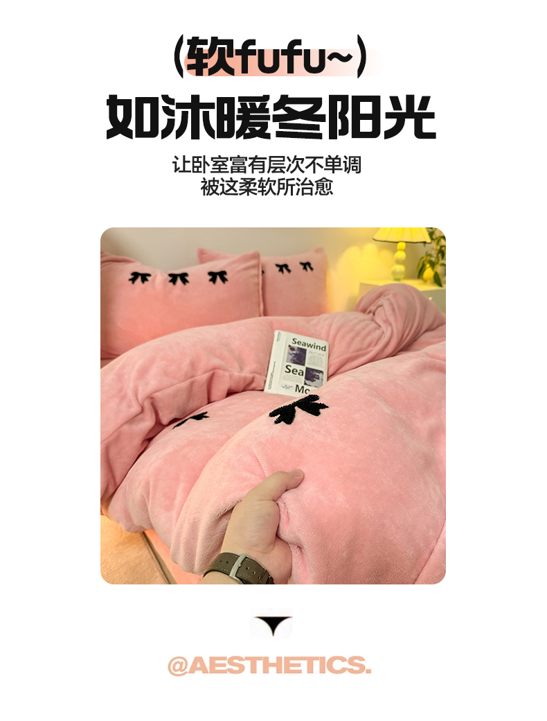 商品名称:首尔家纺 2024新款牛奶绒卡通毛巾绣蝴蝶结系列四件套 花间蝴蝶-粉