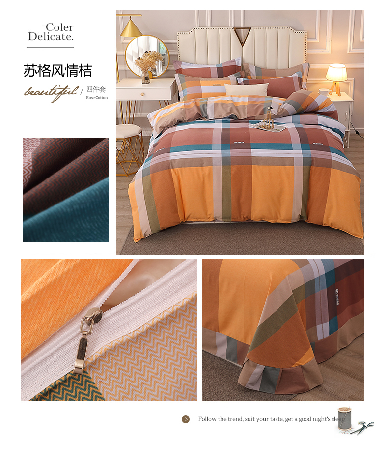 当前位置: 91家纺网 > 商品网购 > 床品套件 > 四件套 > 普通磨毛四件套 > 晶缦家纺 2024新款典雅系-全棉活性磨毛多规格四件套 苏格风情桔
