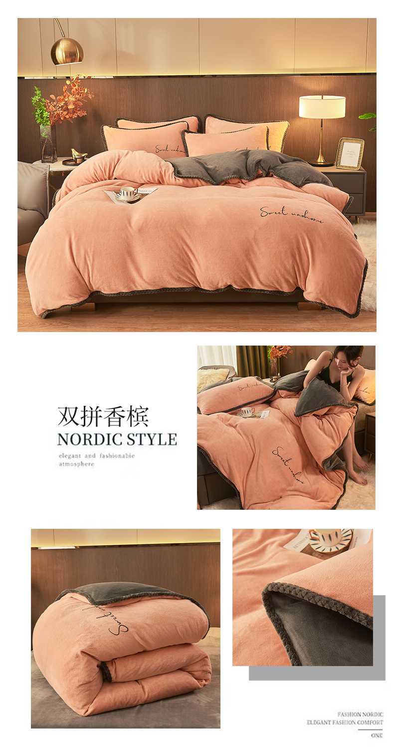 当前位置: 91家纺网 > 商品网购 > 床品套件 > 四件套 > 牛奶绒四件套 > 吾诺 2024新款双拼色牛奶绒四件套 风格一 双拼香槟