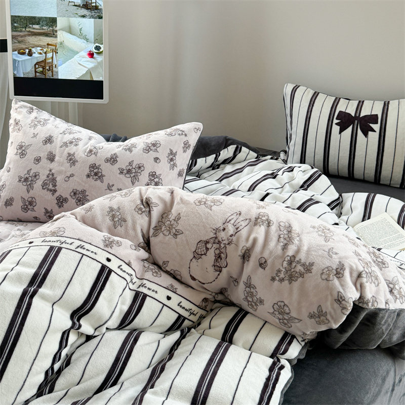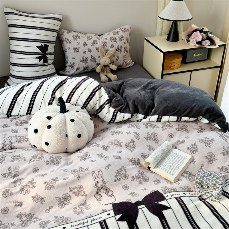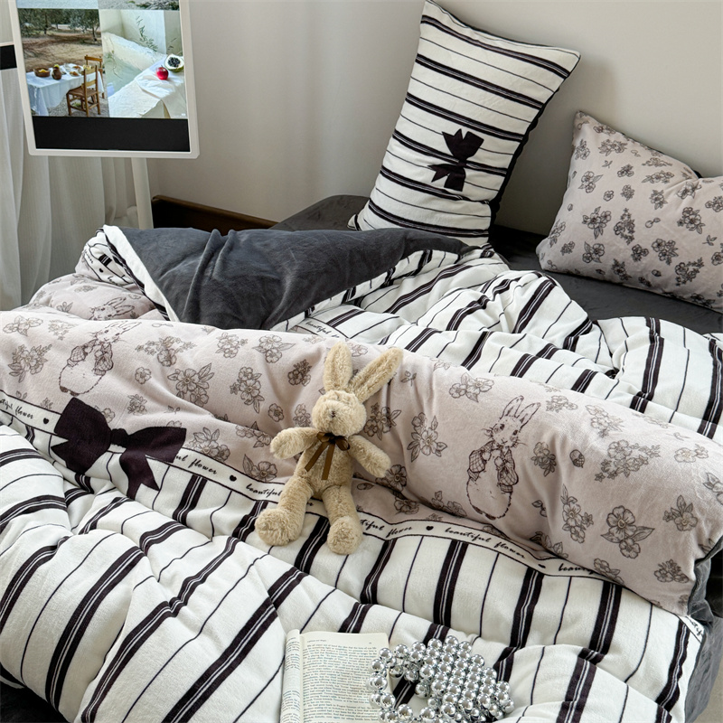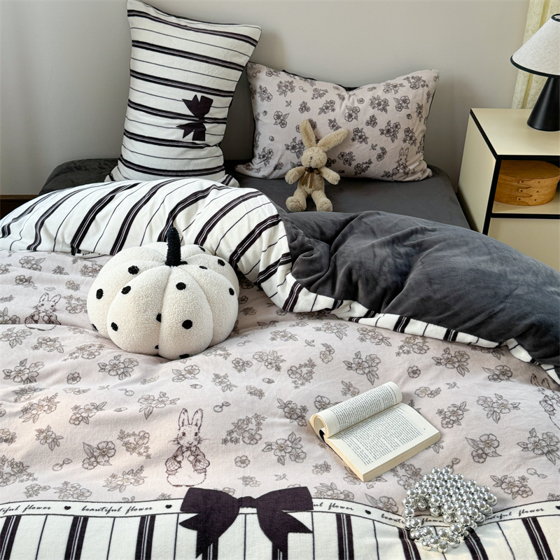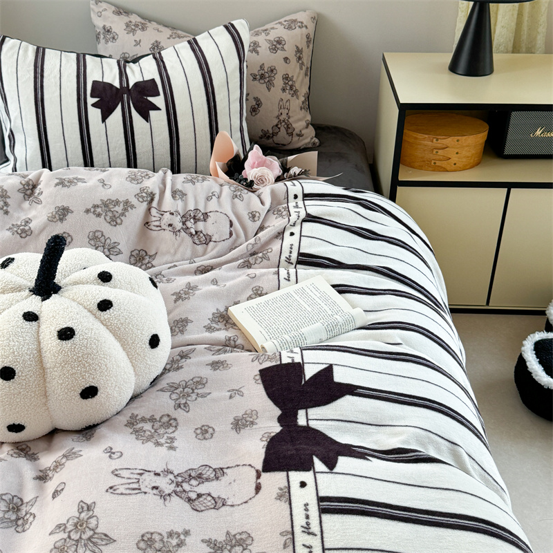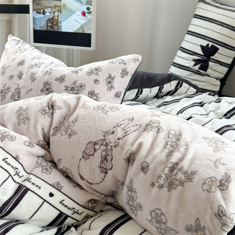 柚子YOUTH 2024新款大版印花牛奶绒四件套 美式兔