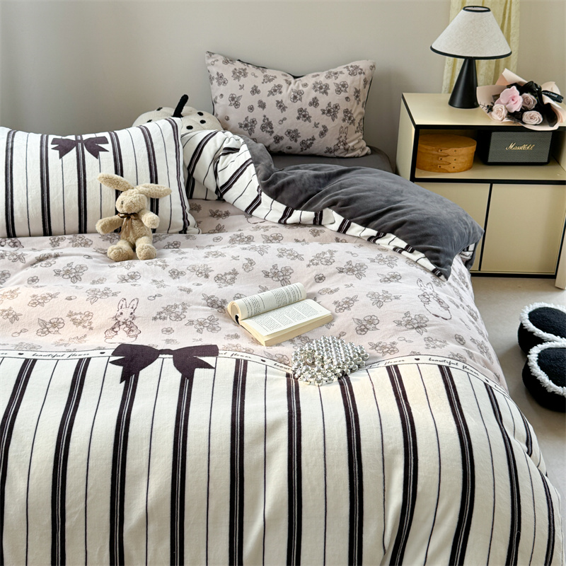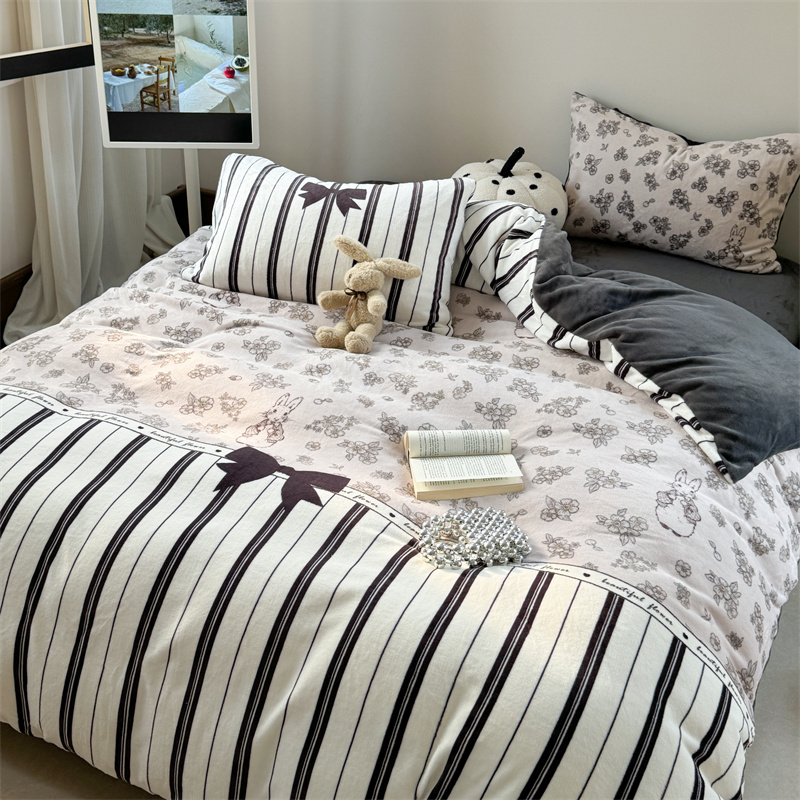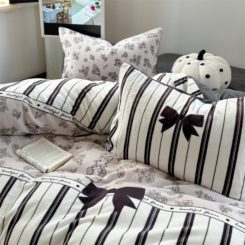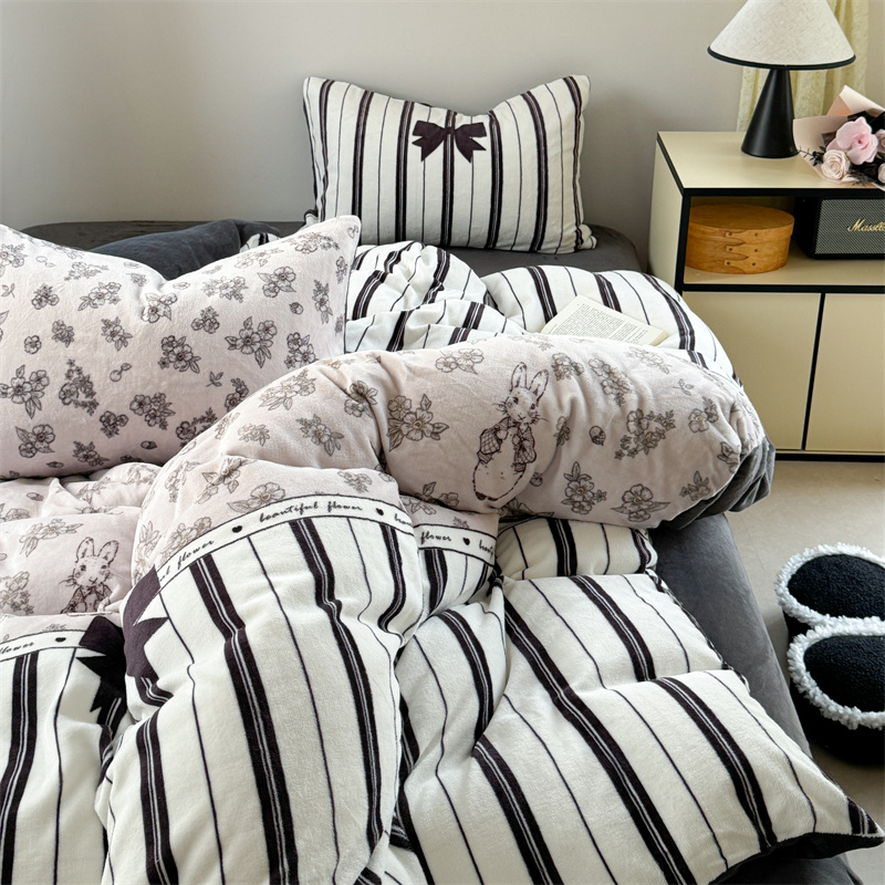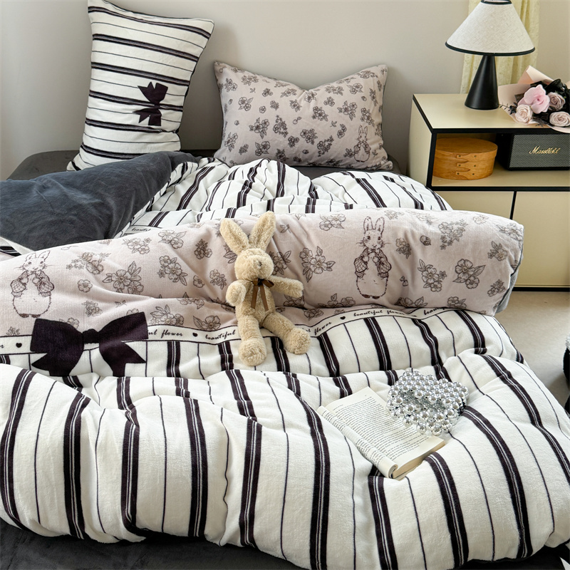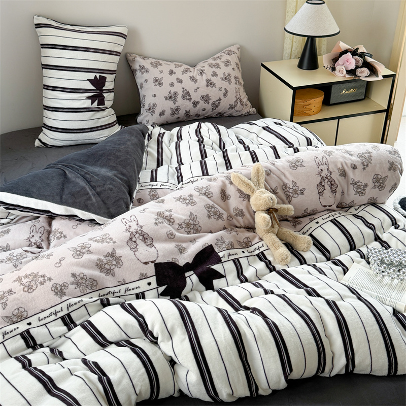柚子YOUTH 2024新款大版印花牛奶绒四件套 美式兔