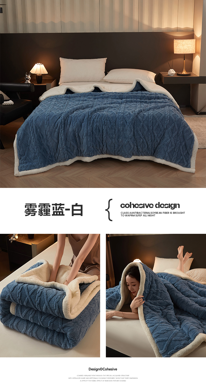 澳梵家居 2024新款三层夹棉加厚塔肤绒毛毯-场景二 雾霾蓝-白