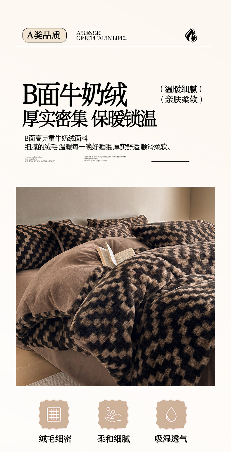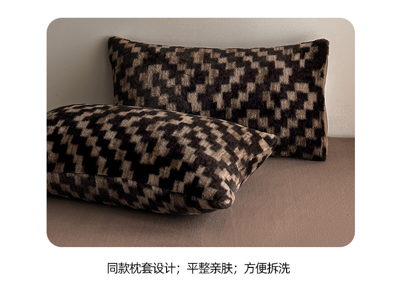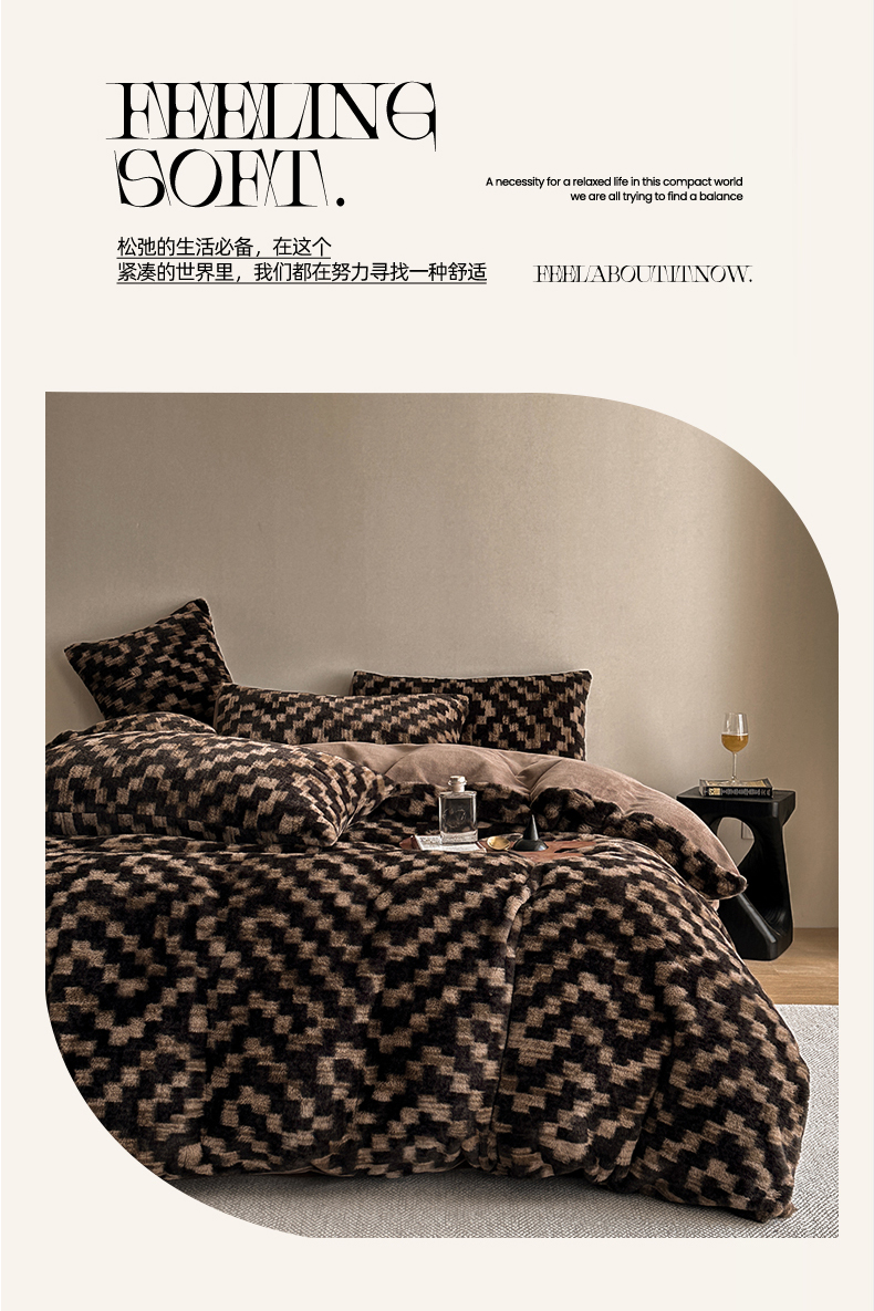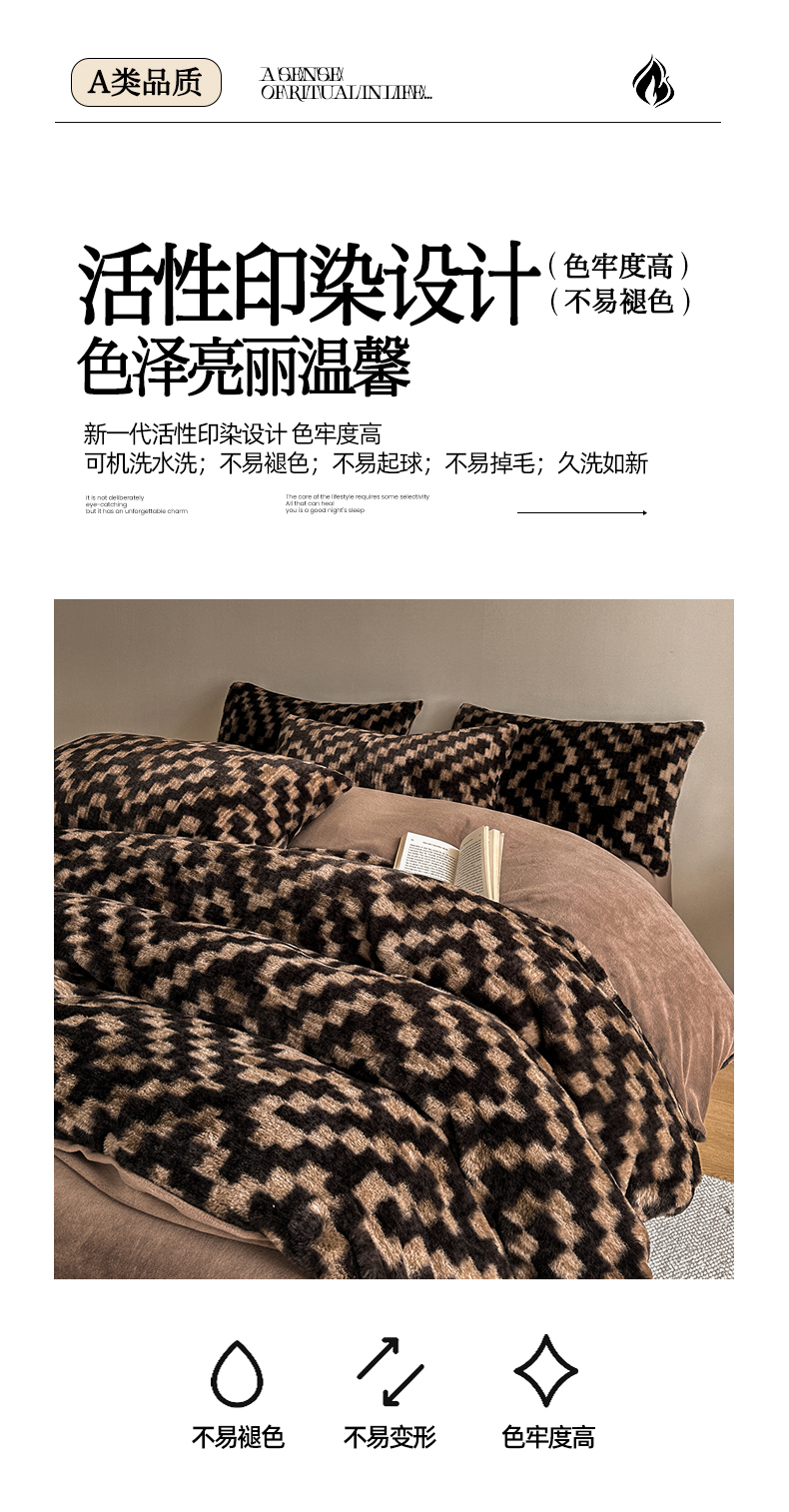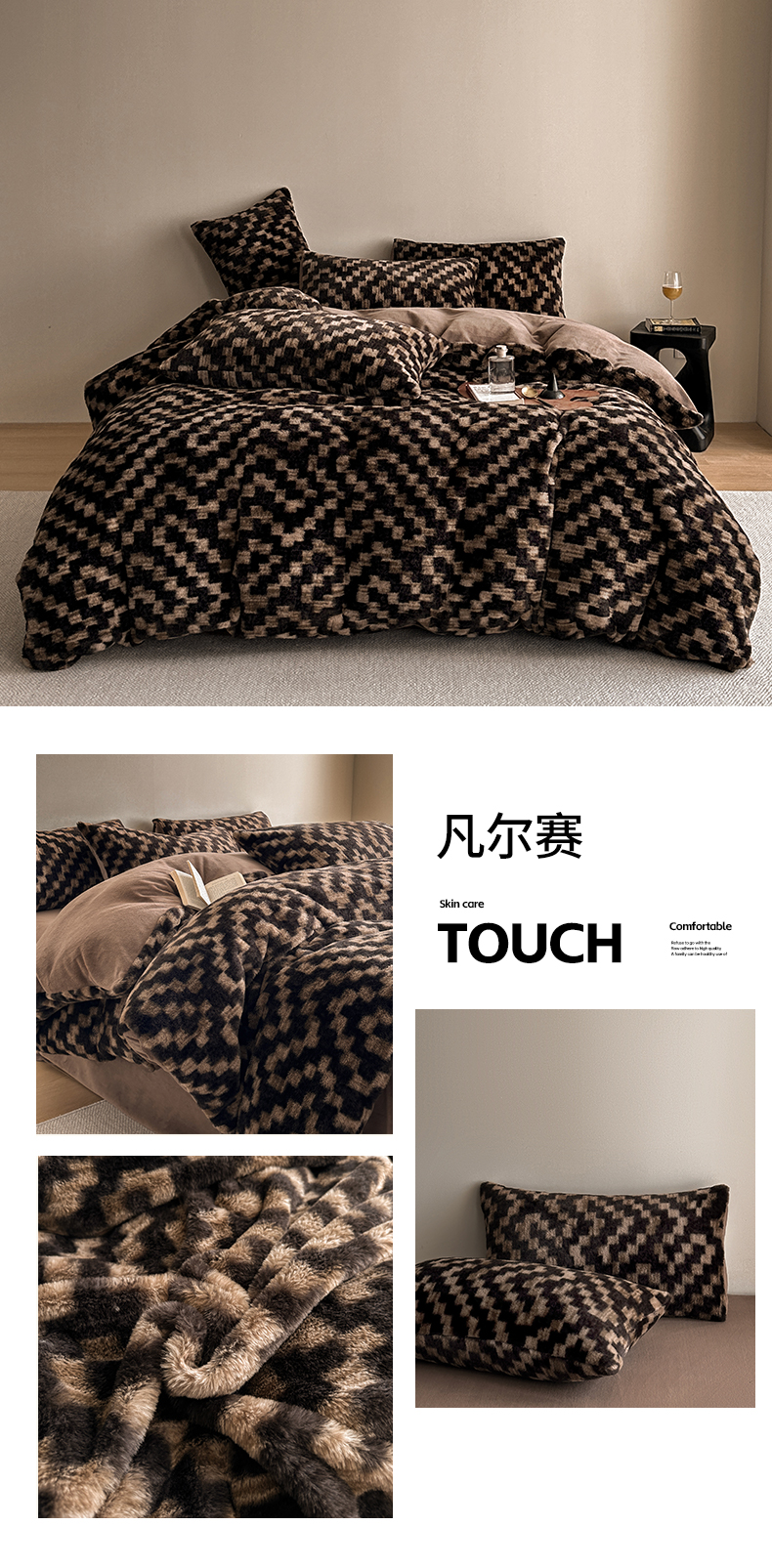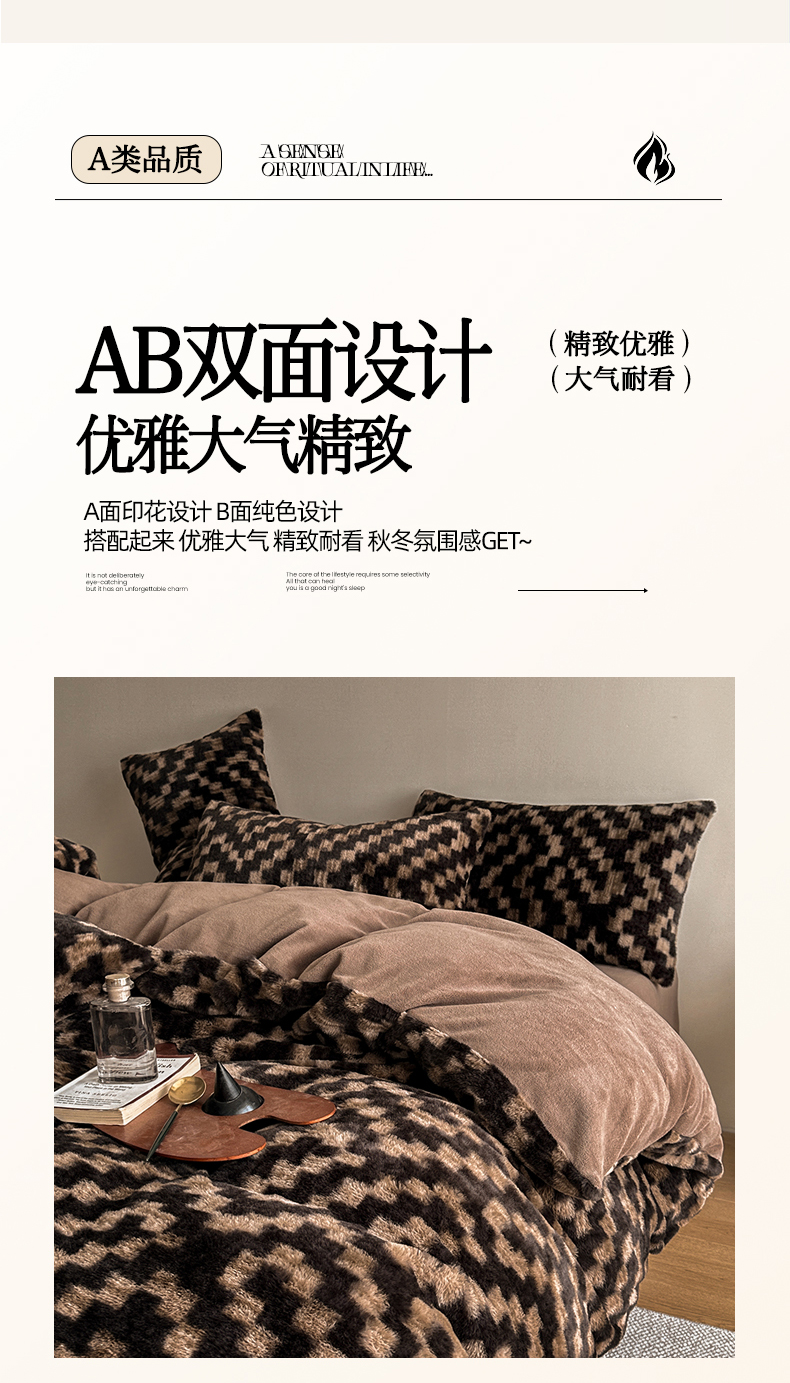 (总)网客家纺 2025新款羊毛绒牛奶绒夹棉床盖四件套,豹点-深灰,简格-黑色,简格-咖色,空间-红色,泥点-灰色,泥点-咖色,维奥-灰色,斜格-灰色,斜格-墨绿
