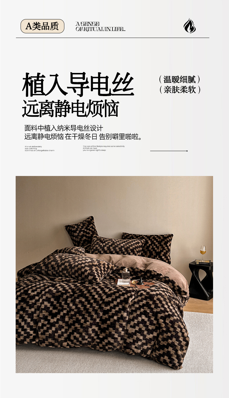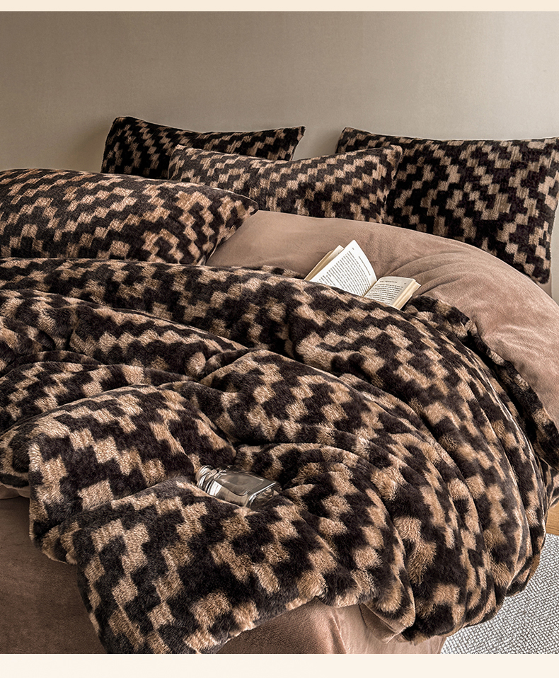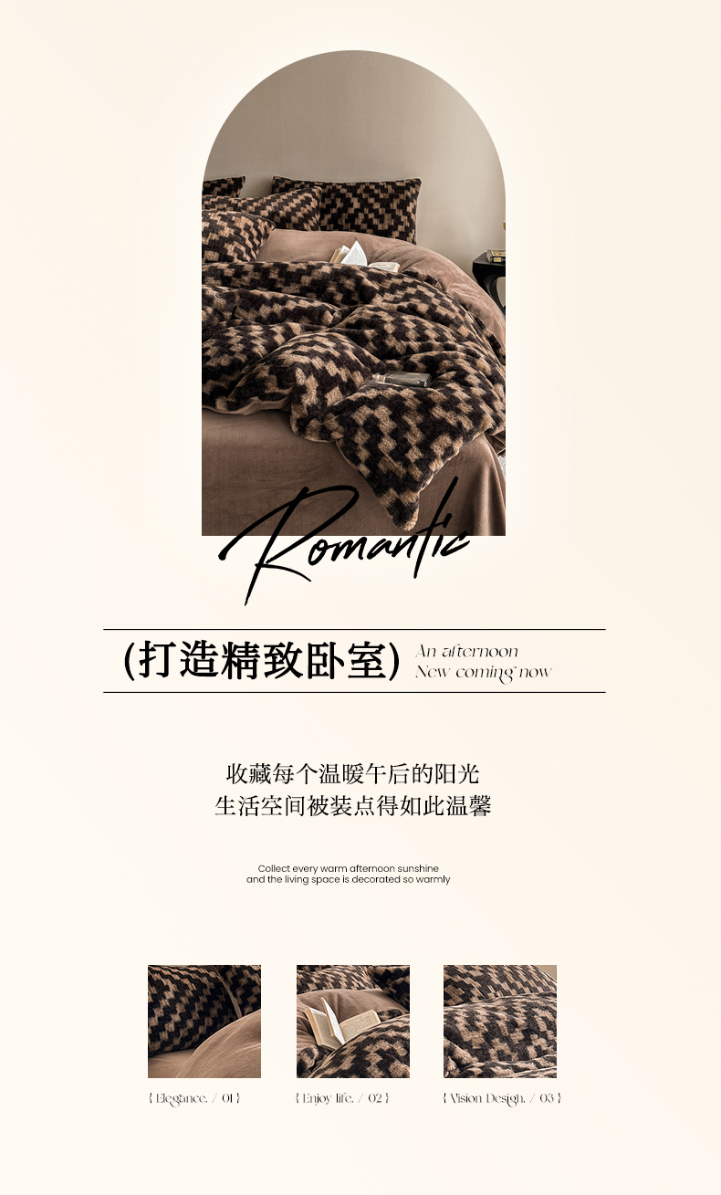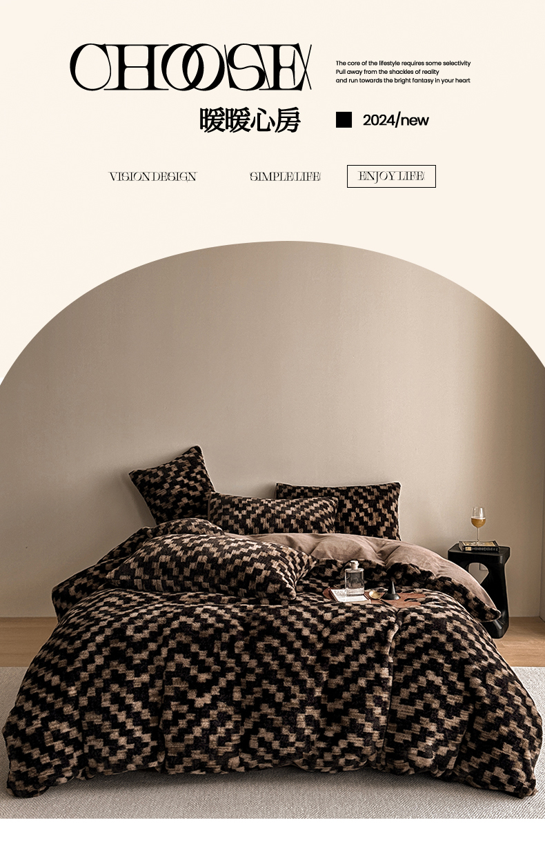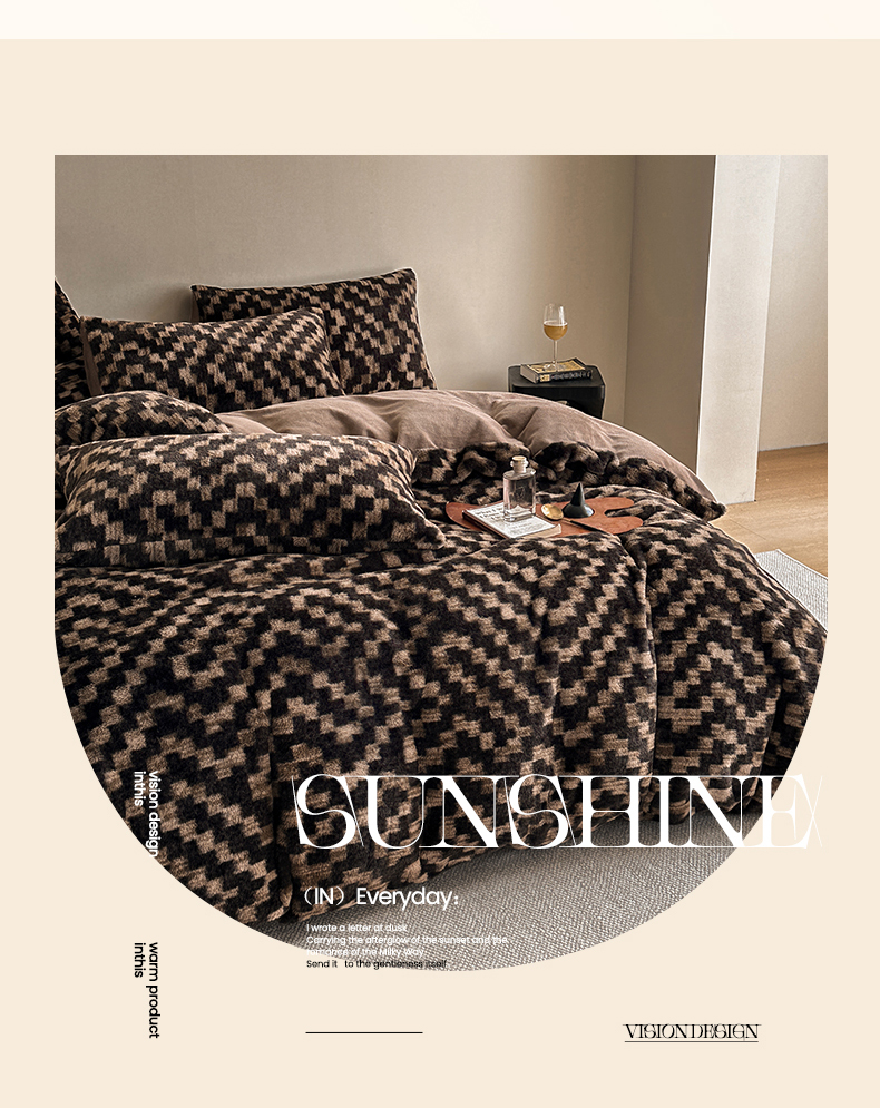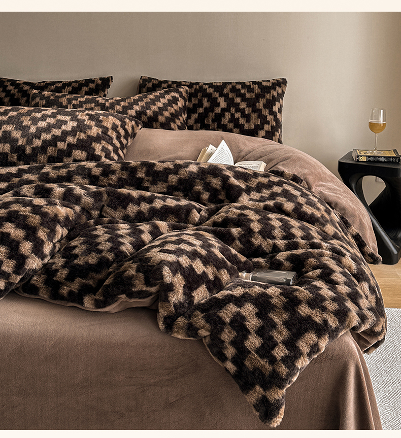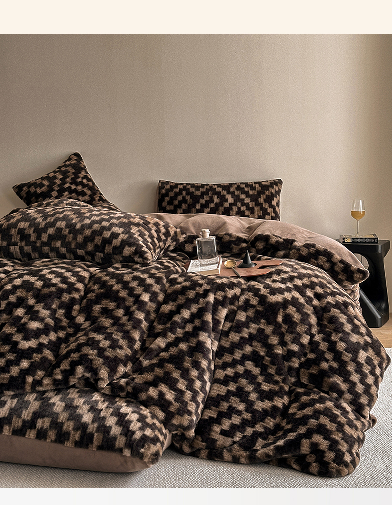 (总)网客家纺 2025新款羊毛绒牛奶绒夹棉床盖四件套,豹点-深灰,简格-黑色,简格-咖色,空间-红色,泥点-灰色,泥点-咖色,维奥-灰色,斜格-灰色,斜格-墨绿