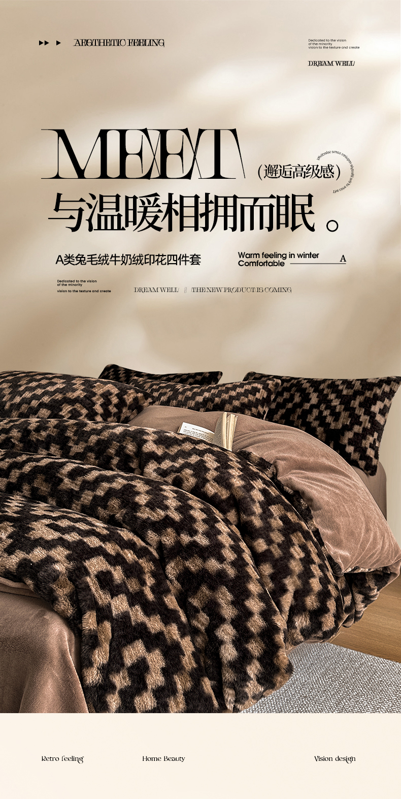 网客家纺 2024新款兔毛绒牛奶绒印花四件套-繁花系列 凡尔赛