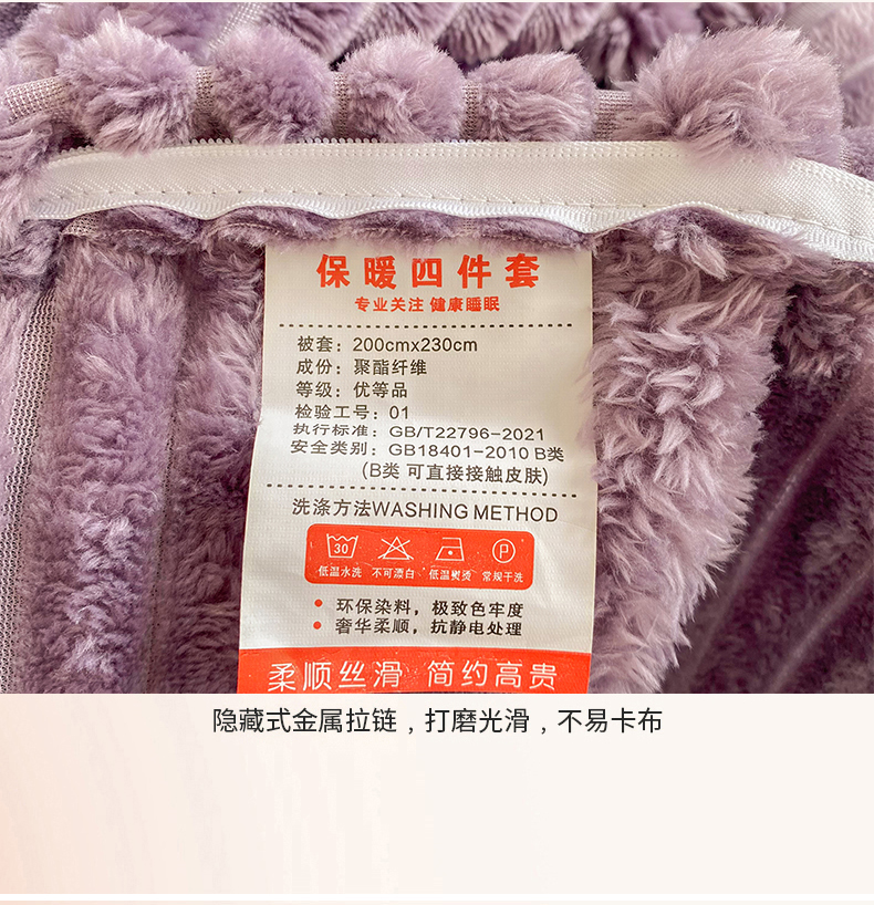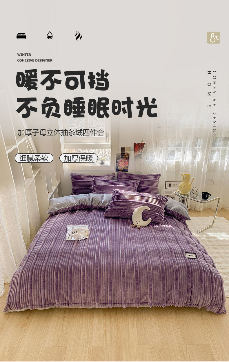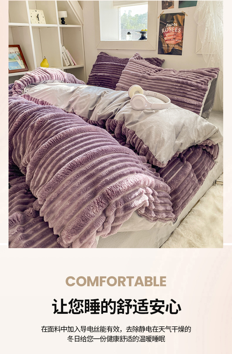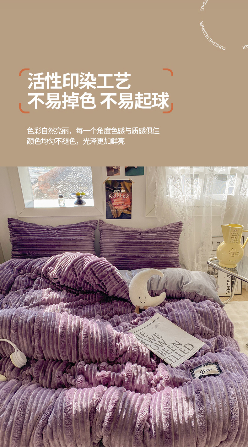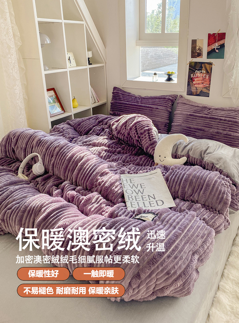 商品名称:2025新款秋冬澳密绒保暖四件套-雪瑞系列 雪瑞-紫色