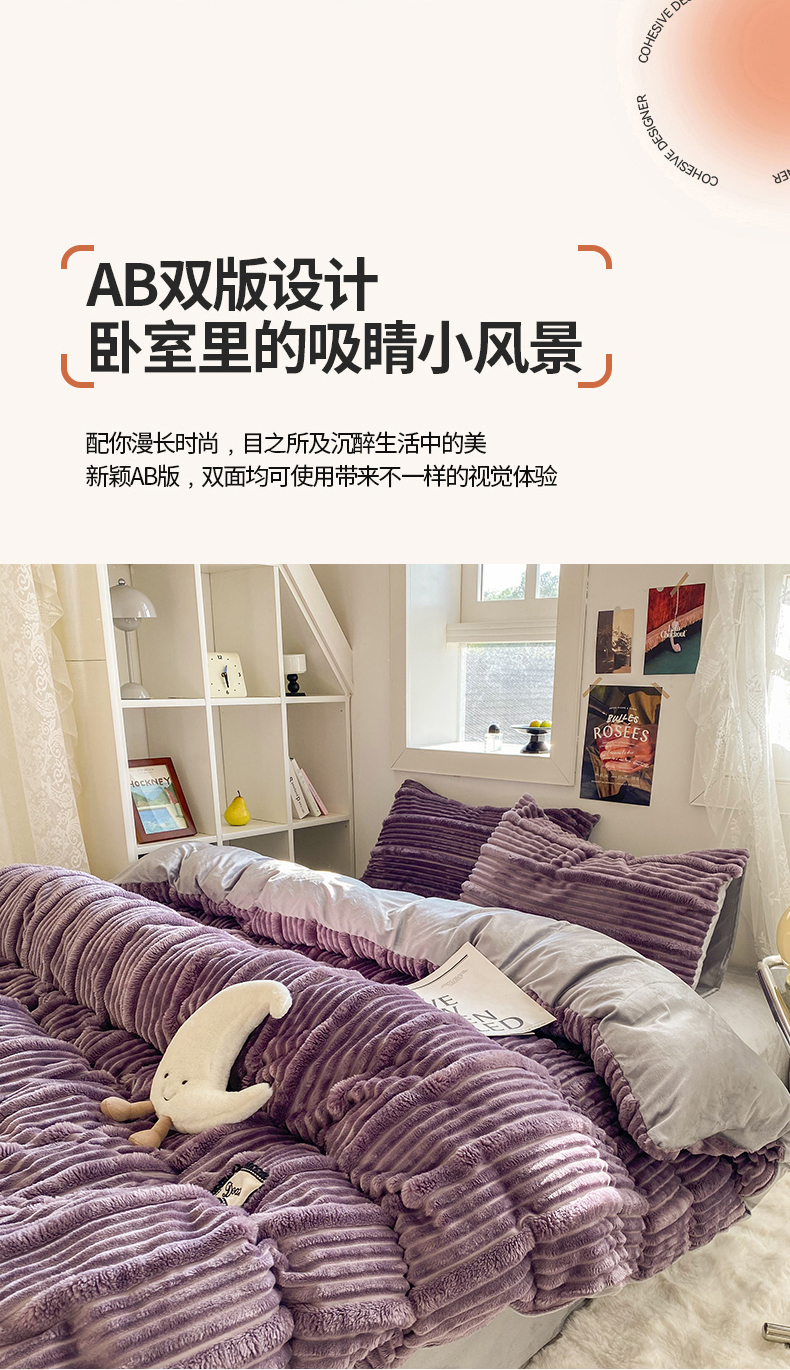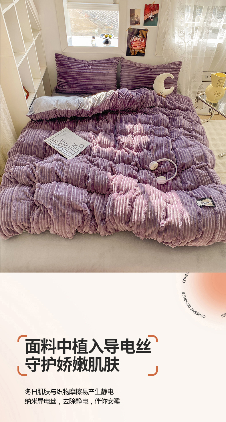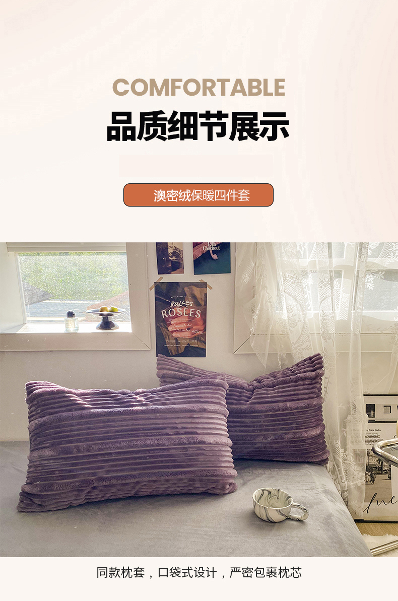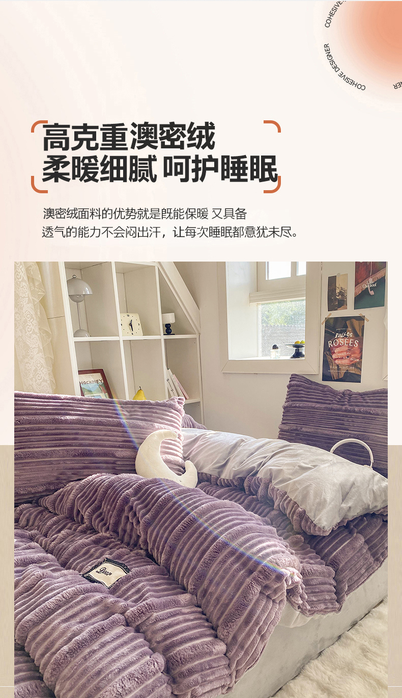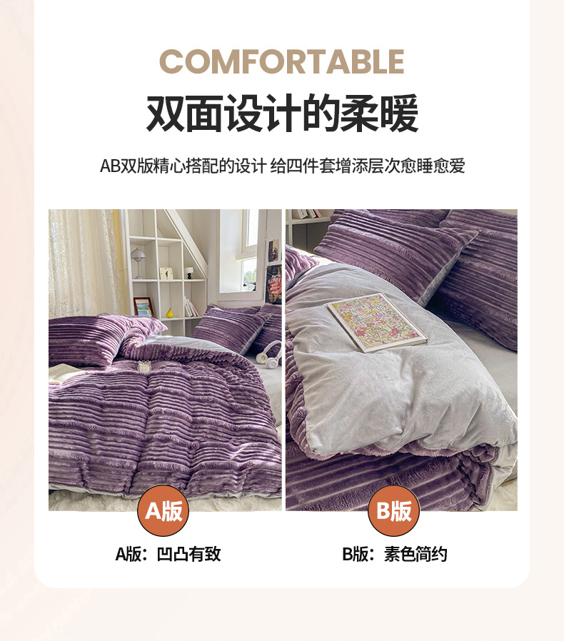 商品名称:2025新款秋冬澳密绒保暖四件套-雪瑞系列 雪瑞-紫色