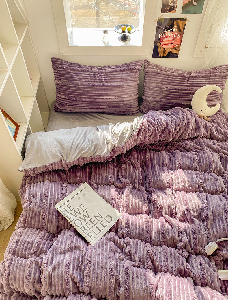 2025新款秋冬澳密绒保暖四件套-雪瑞系列 雪瑞-紫色