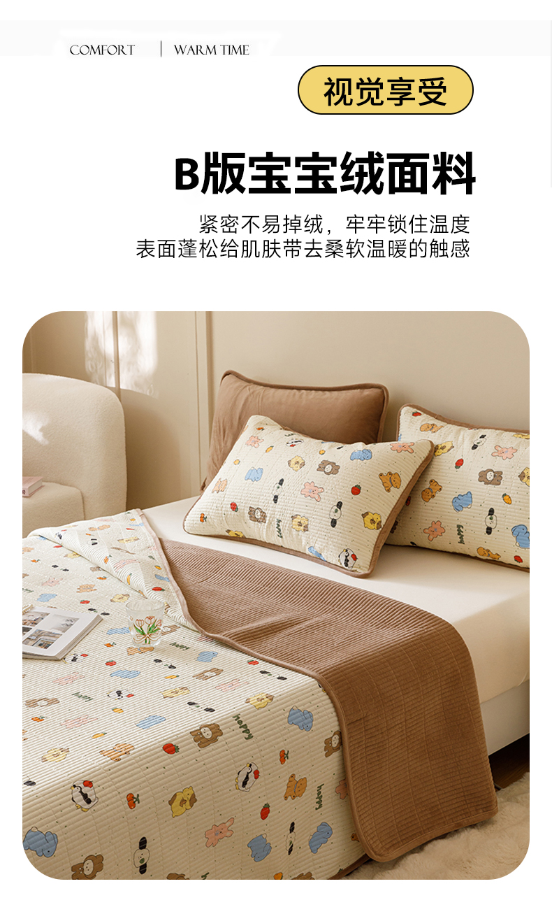 富瑞阁 2024新款婴儿绒宝宝绒牛奶绒床盖三件套单品学生宿舍床盖 松岛可可