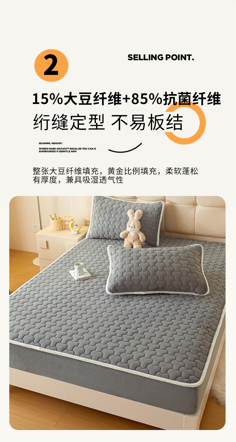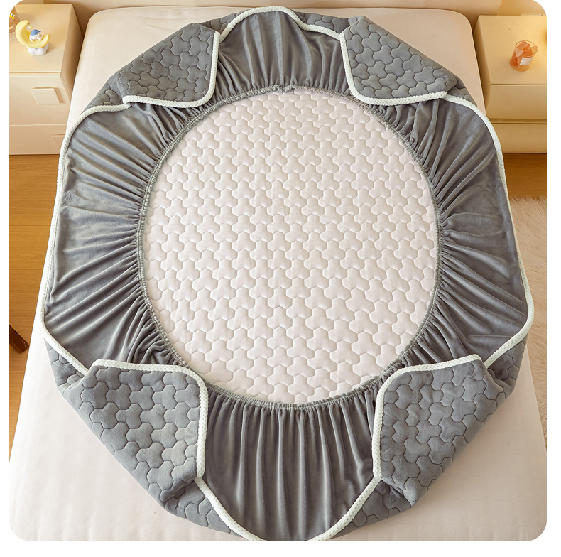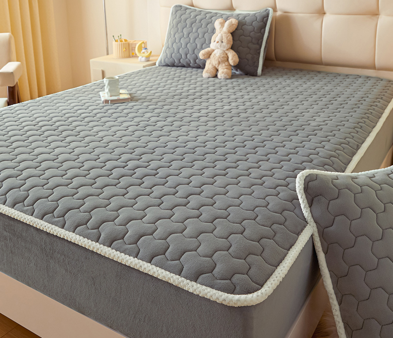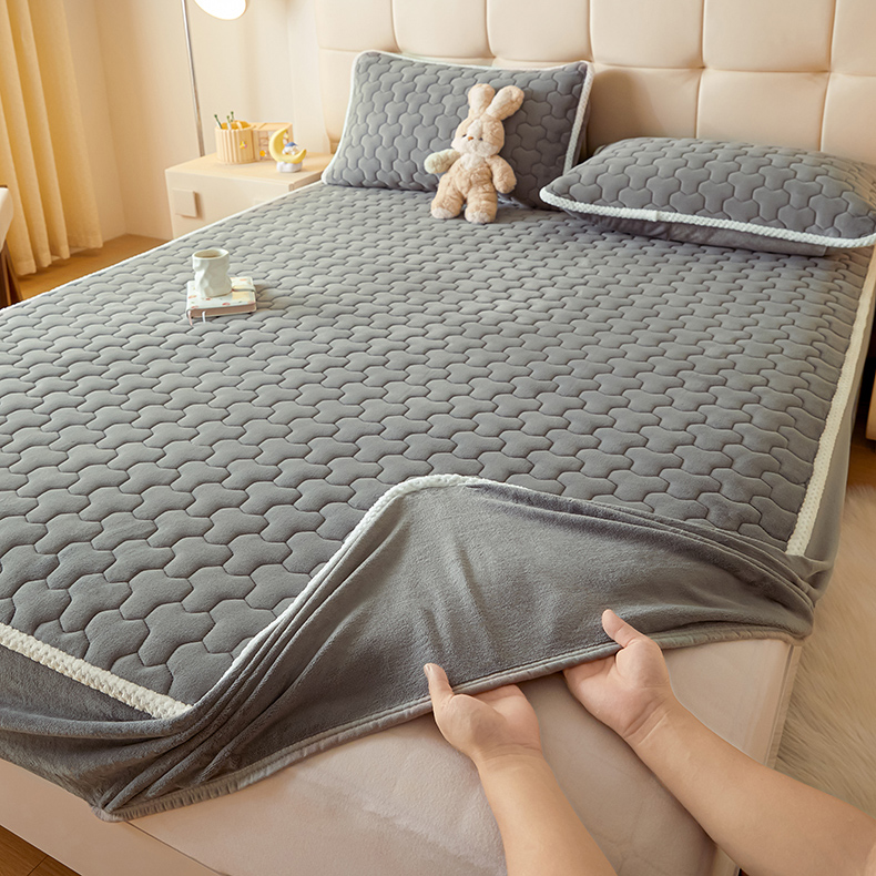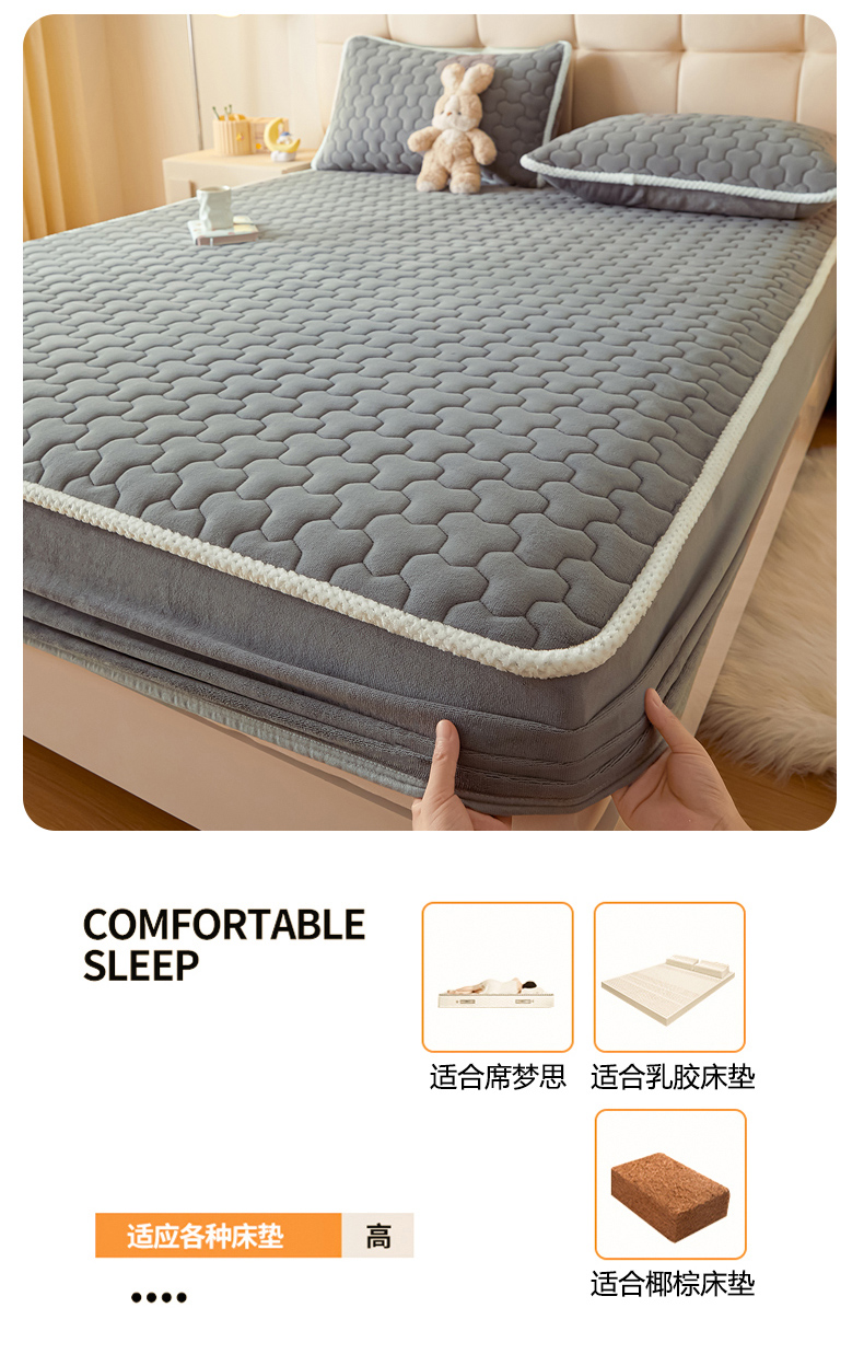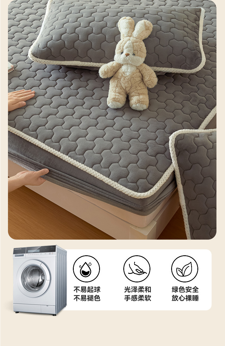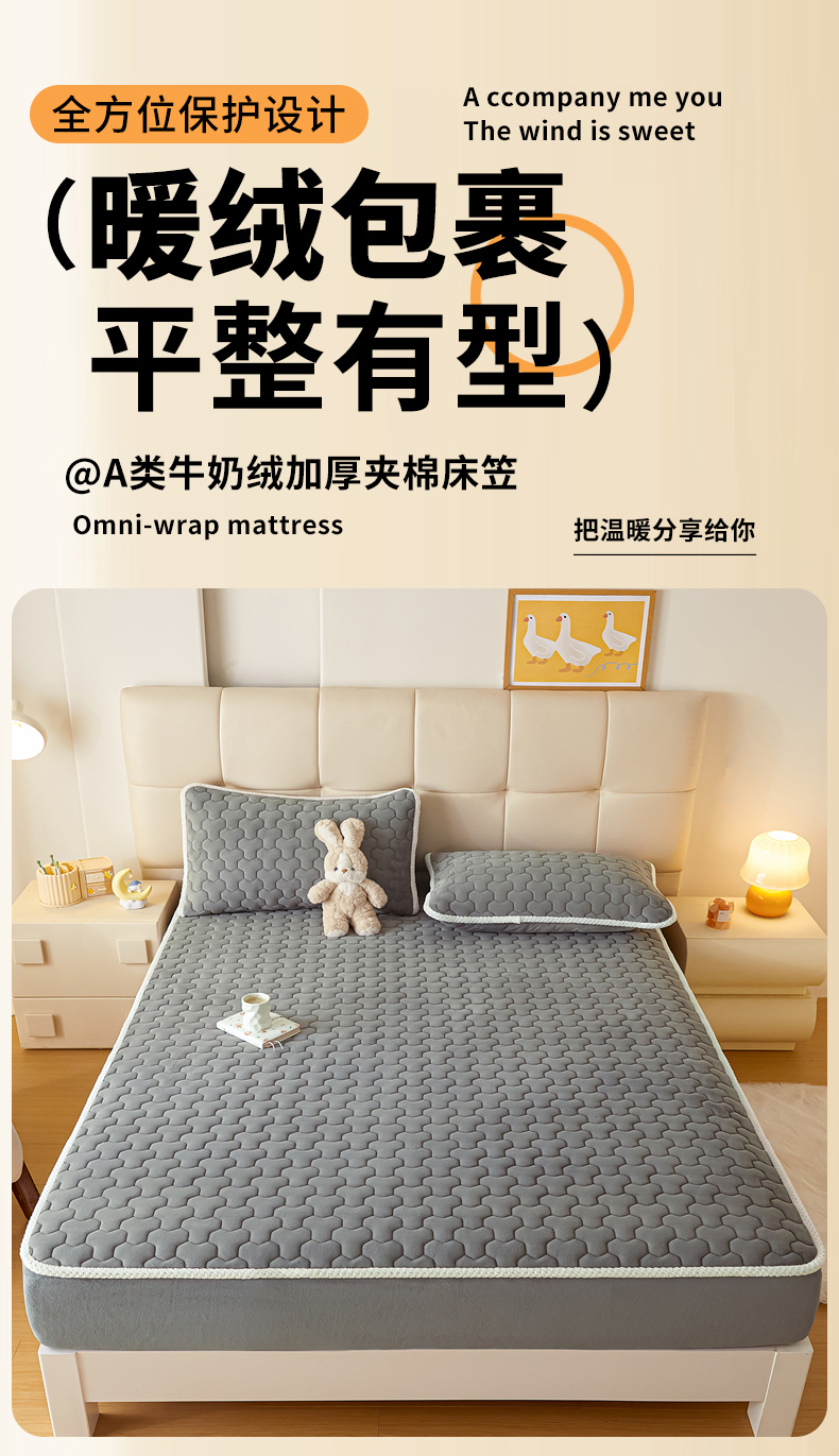 • 91家纺网 家纺一手货源 找家纺 雪云美 2024冬季新款加厚牛奶绒夹棉床笠三件套A类大豆床垫保护套纯色 牛奶绒--帝灰
