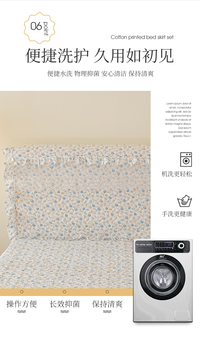 (总)十个点家纺 2025新款千鸟格磨毛绗缝夹棉纯色花边床裙三件套,经典白色,经典兰色,经典浅灰,经典浅驼,经典深灰,经典玉粉