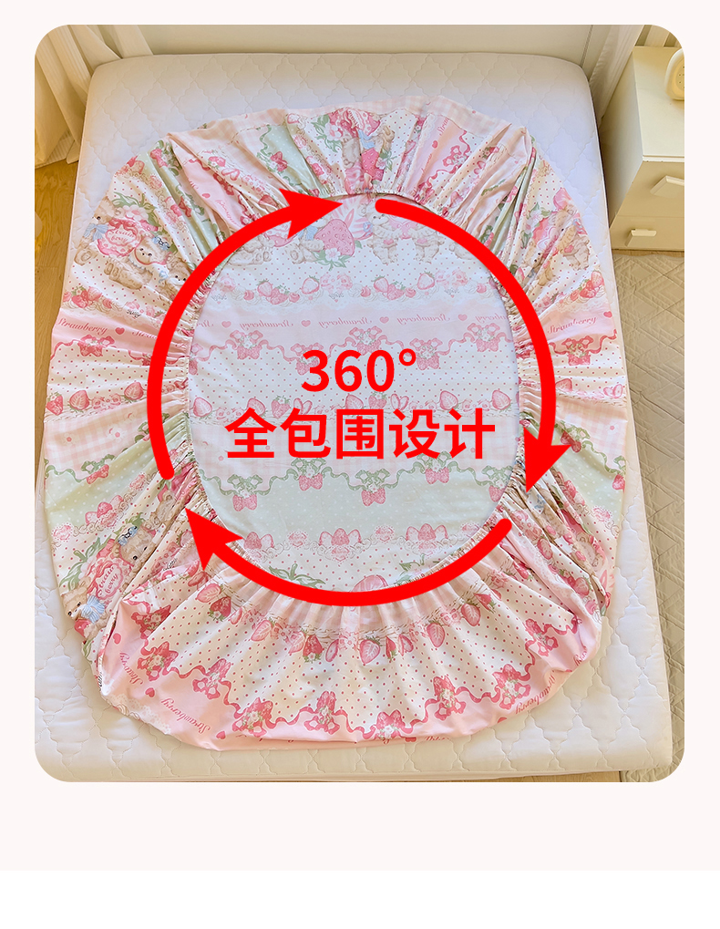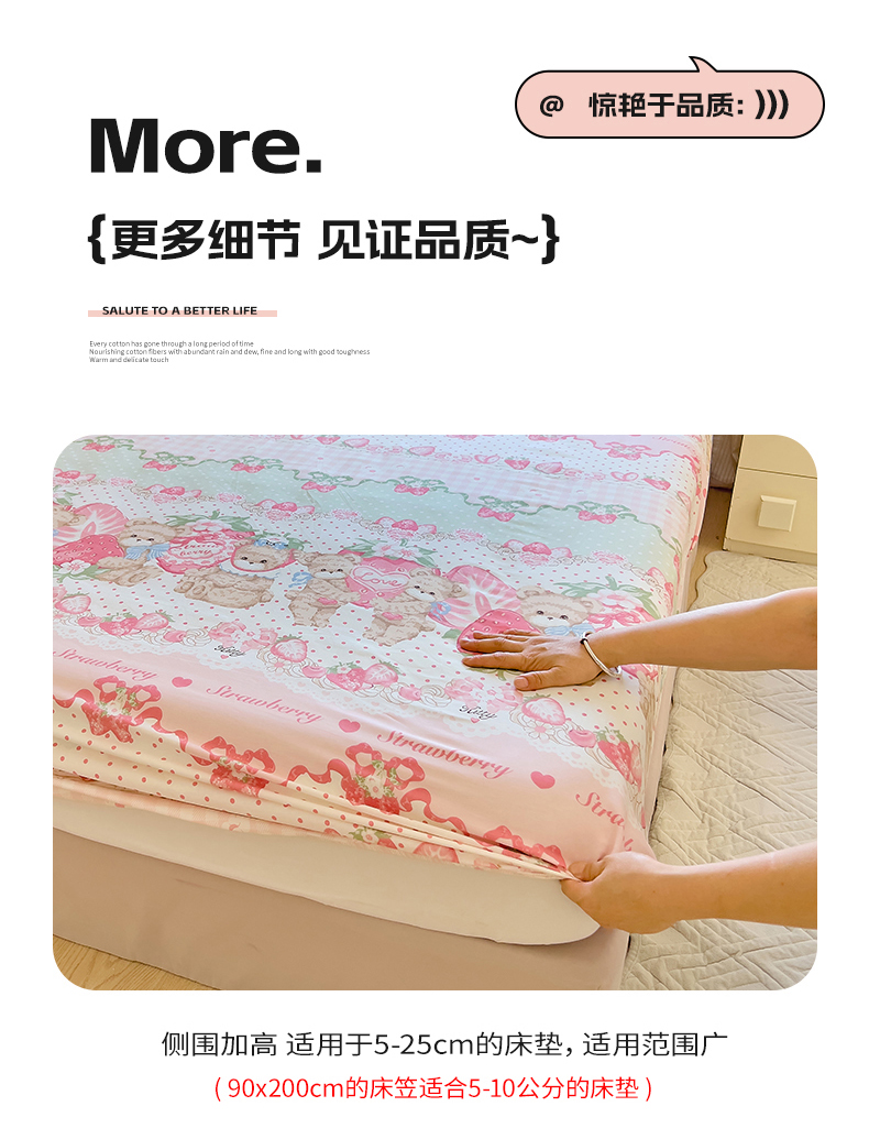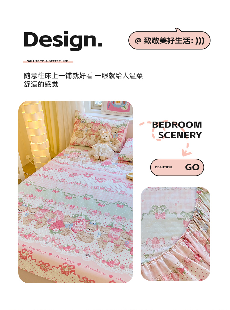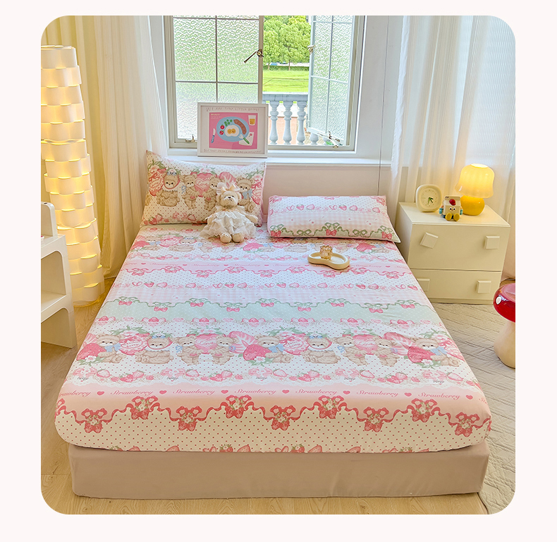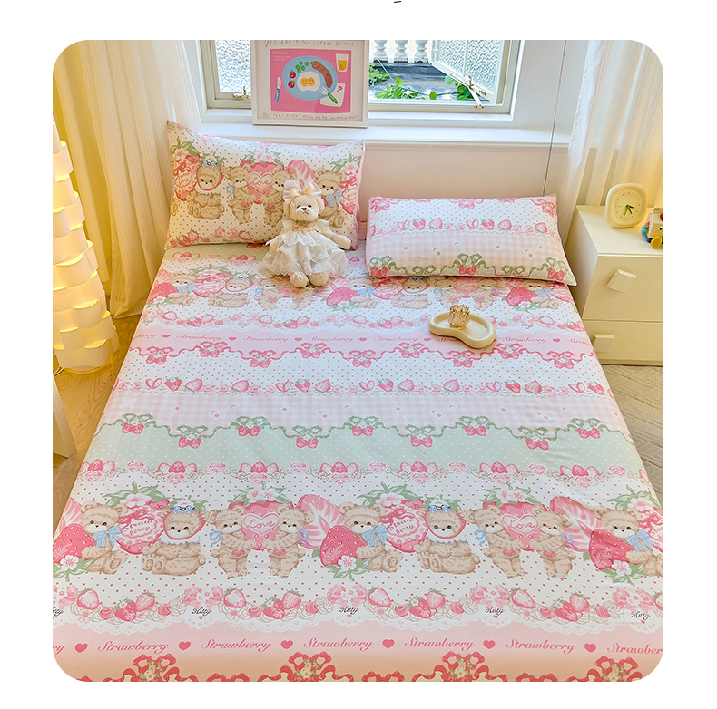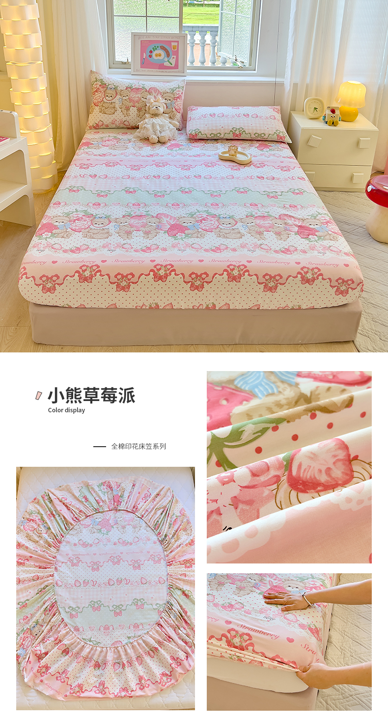 商品名称:拾物记 2024新款A类12868全棉喷气床笠 小熊草莓派