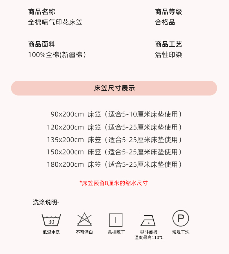 床单/床笠尺寸