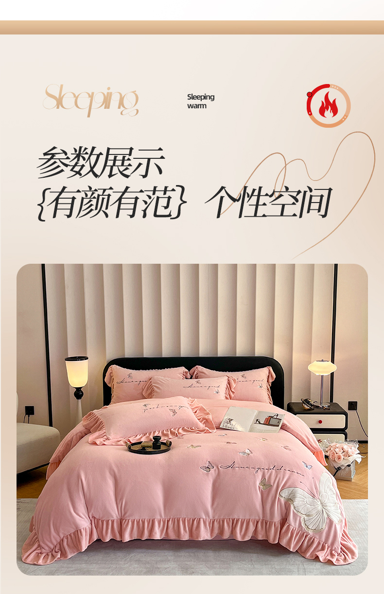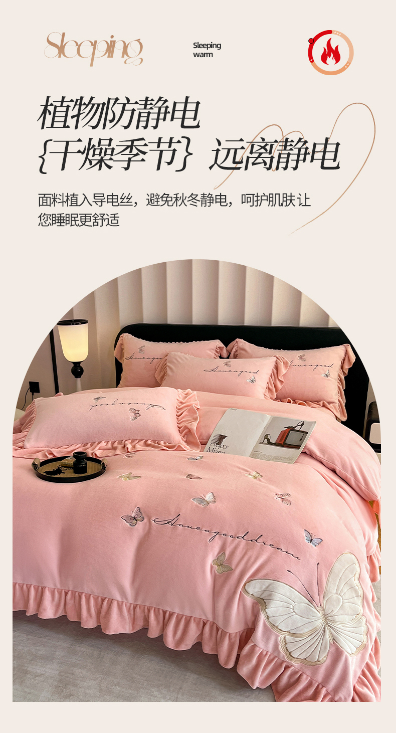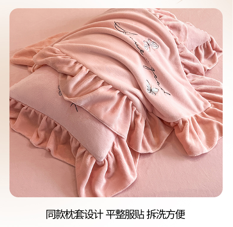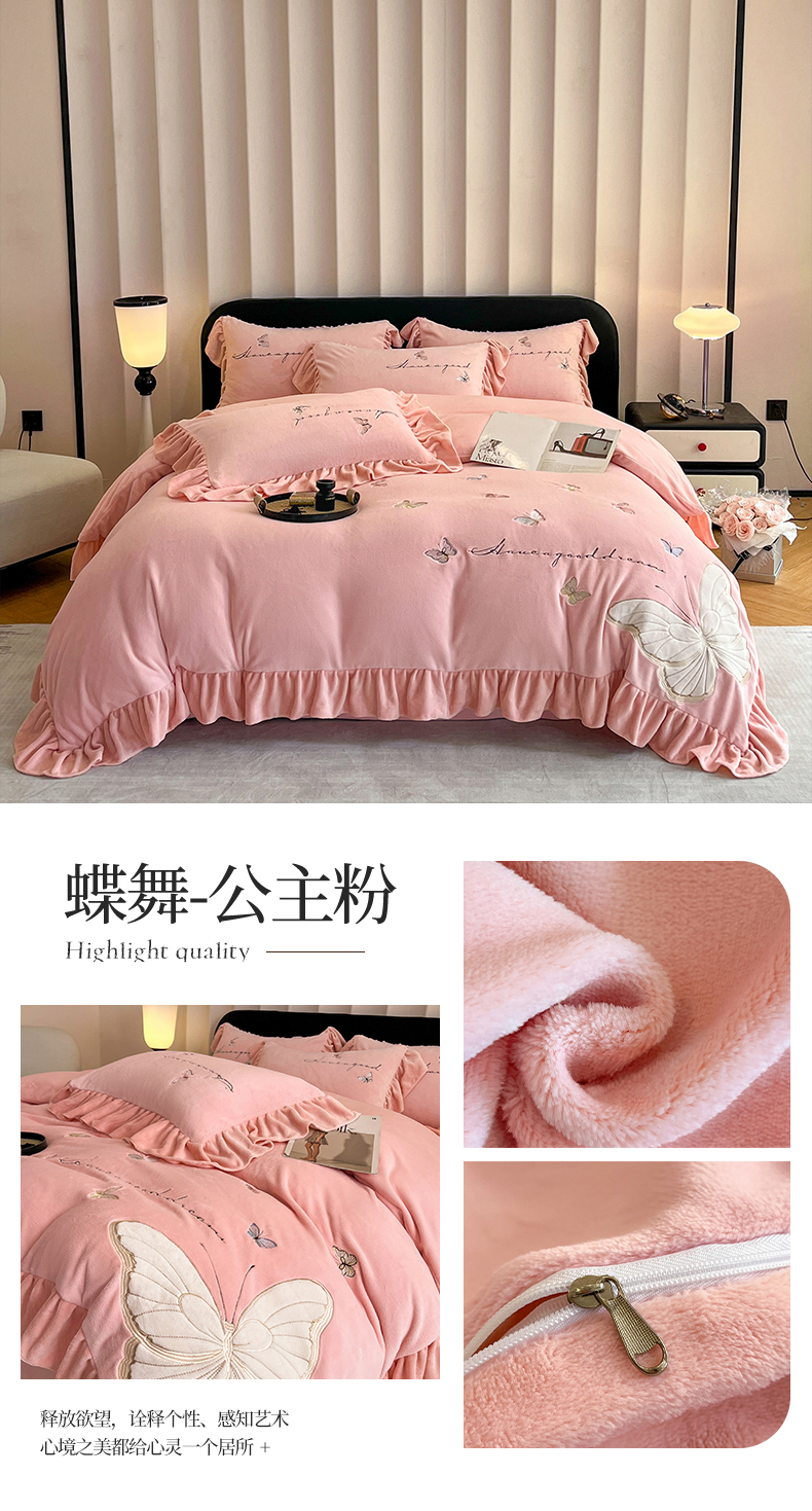 爱家(原缔乐家纺) 2024新款牛奶绒贴布绣四件套-蝶舞 蝶舞-公主粉