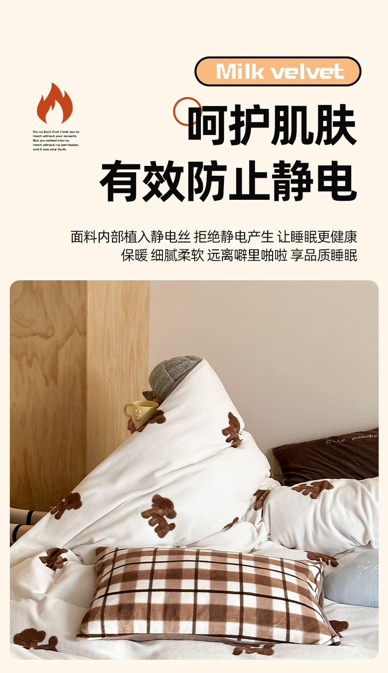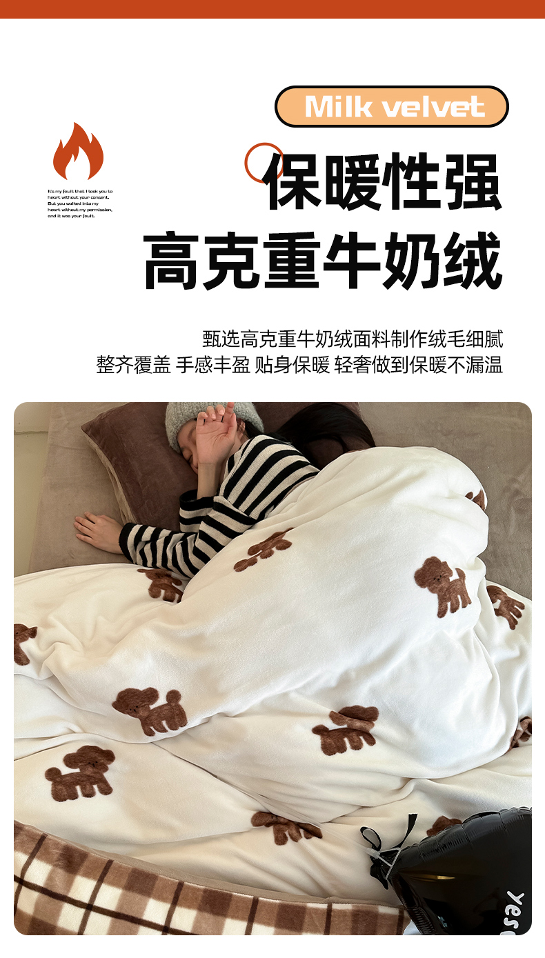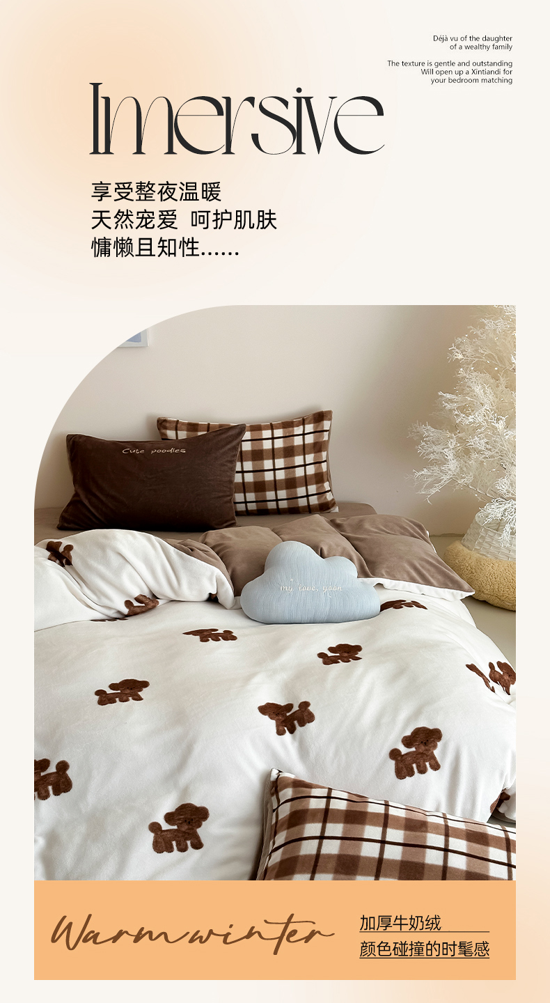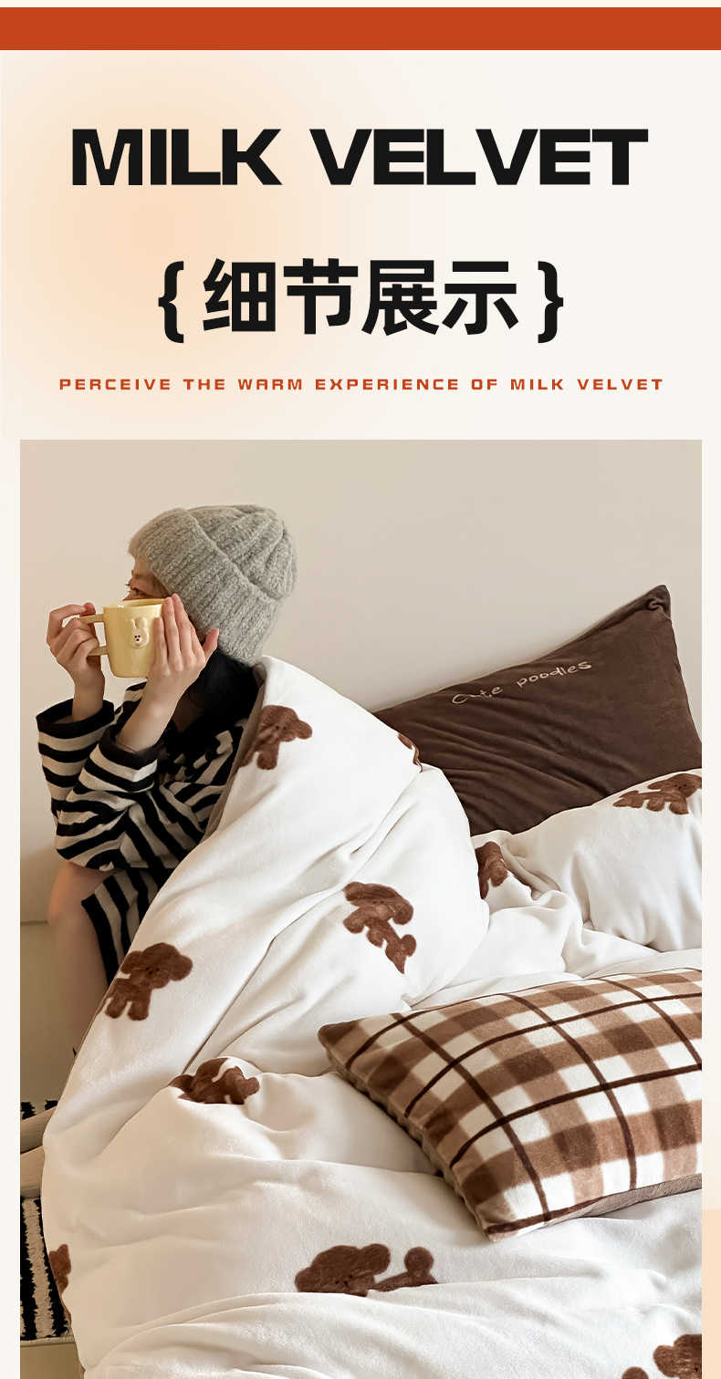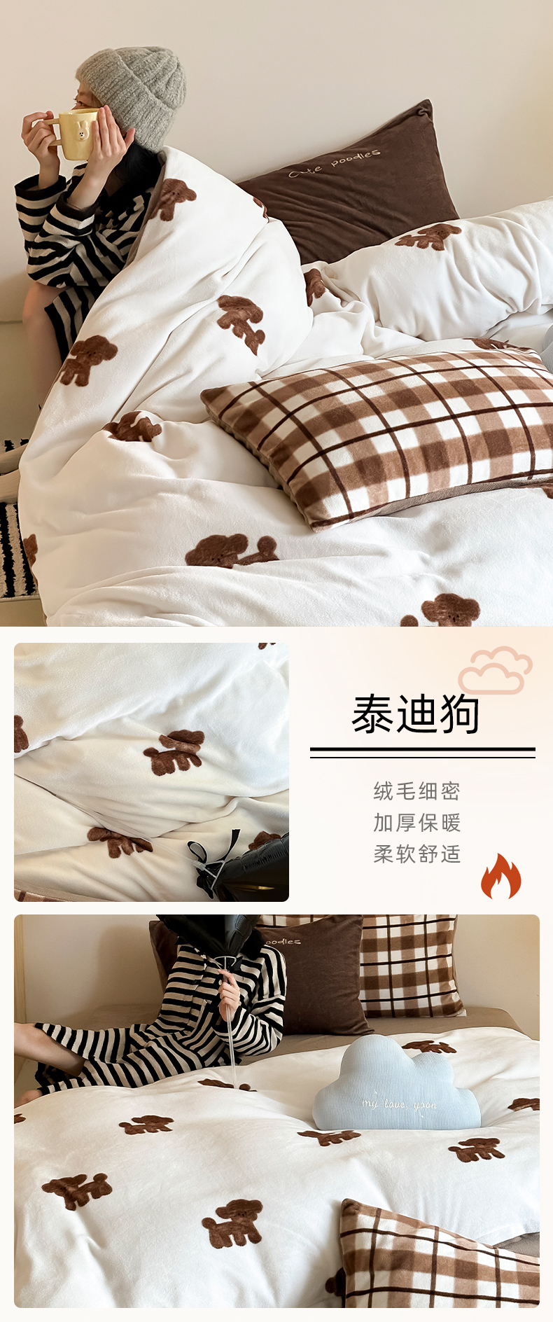 商品名称:时光里 2024新款ins风牛奶绒四件套 泰迪狗