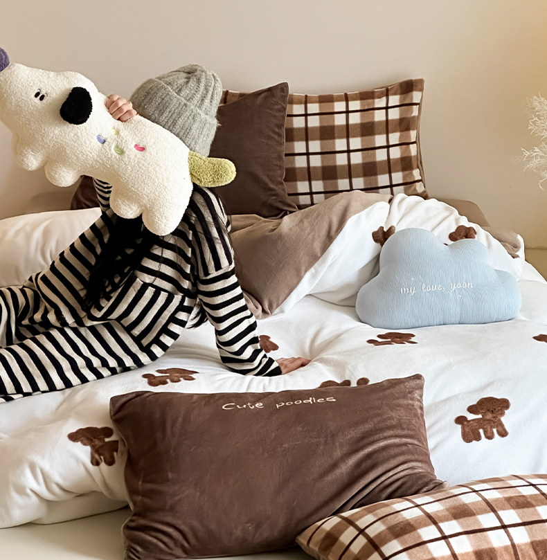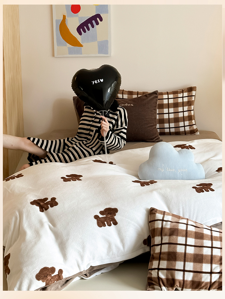 时光里 2024新款ins风牛奶绒四件套 泰迪狗