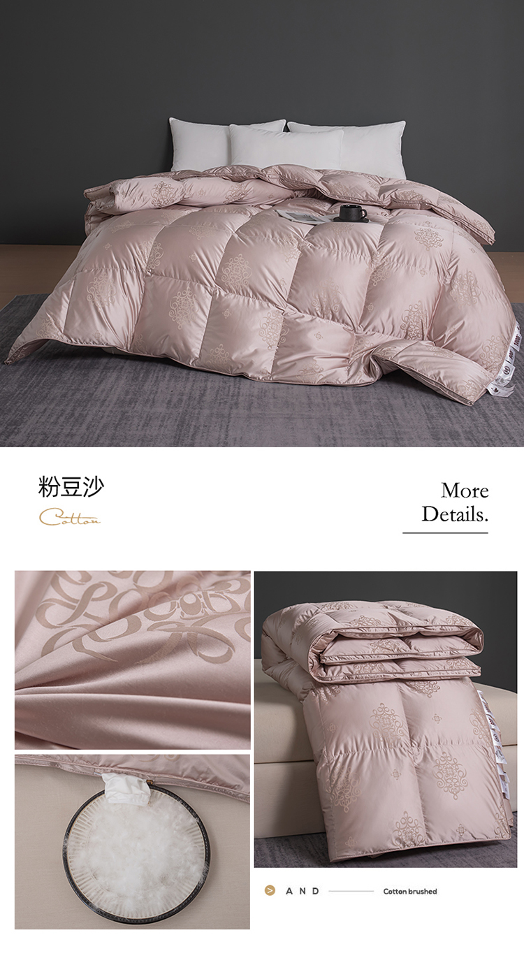 (总)静若居 2025新款高端提花羽绒被鸭绒被贡缎提花单层羽绒被壳,飘颜粉,飘金色,飘高级灰