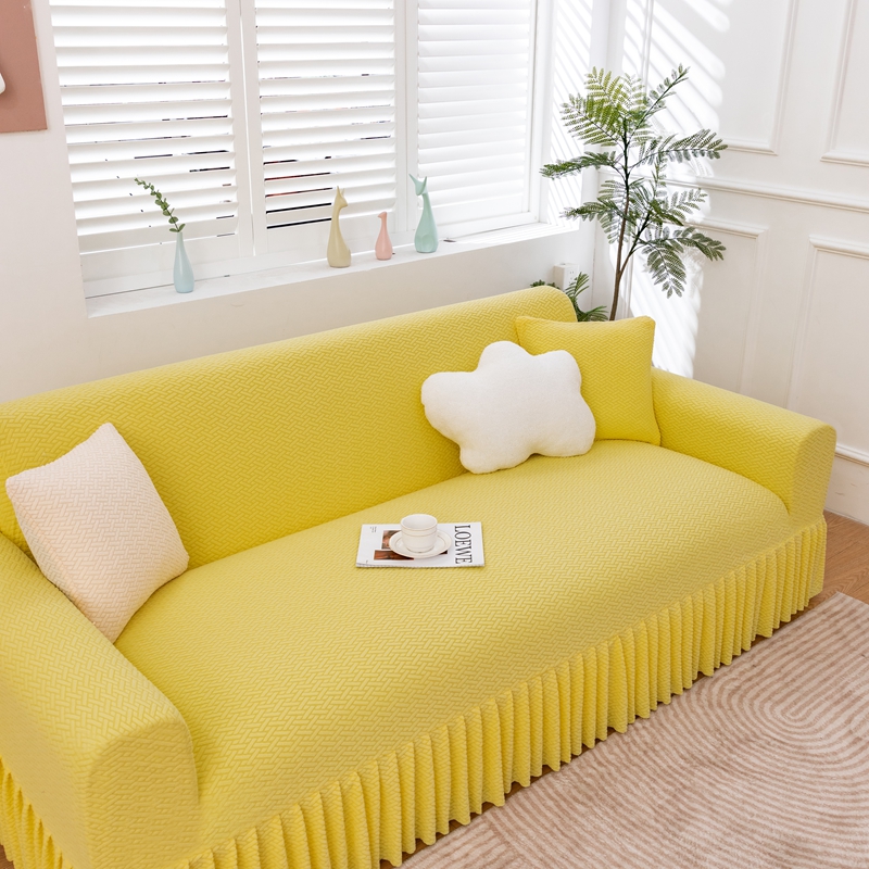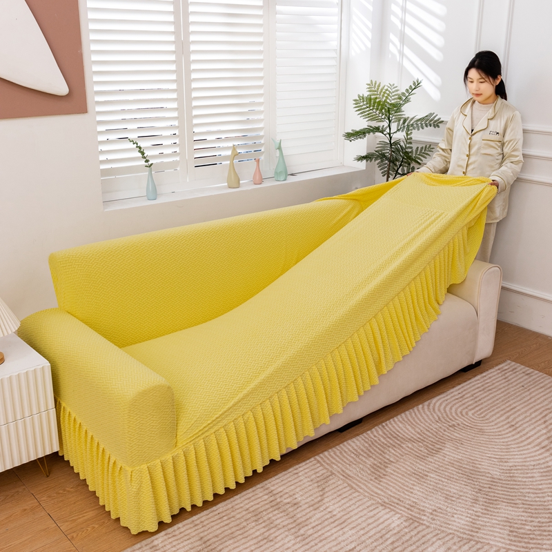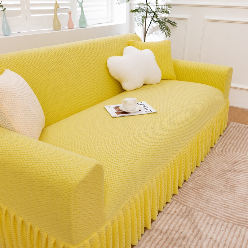 商品名称:沐沐家纺 2026新款摇粒绒裙边沙发套 柠檬黄